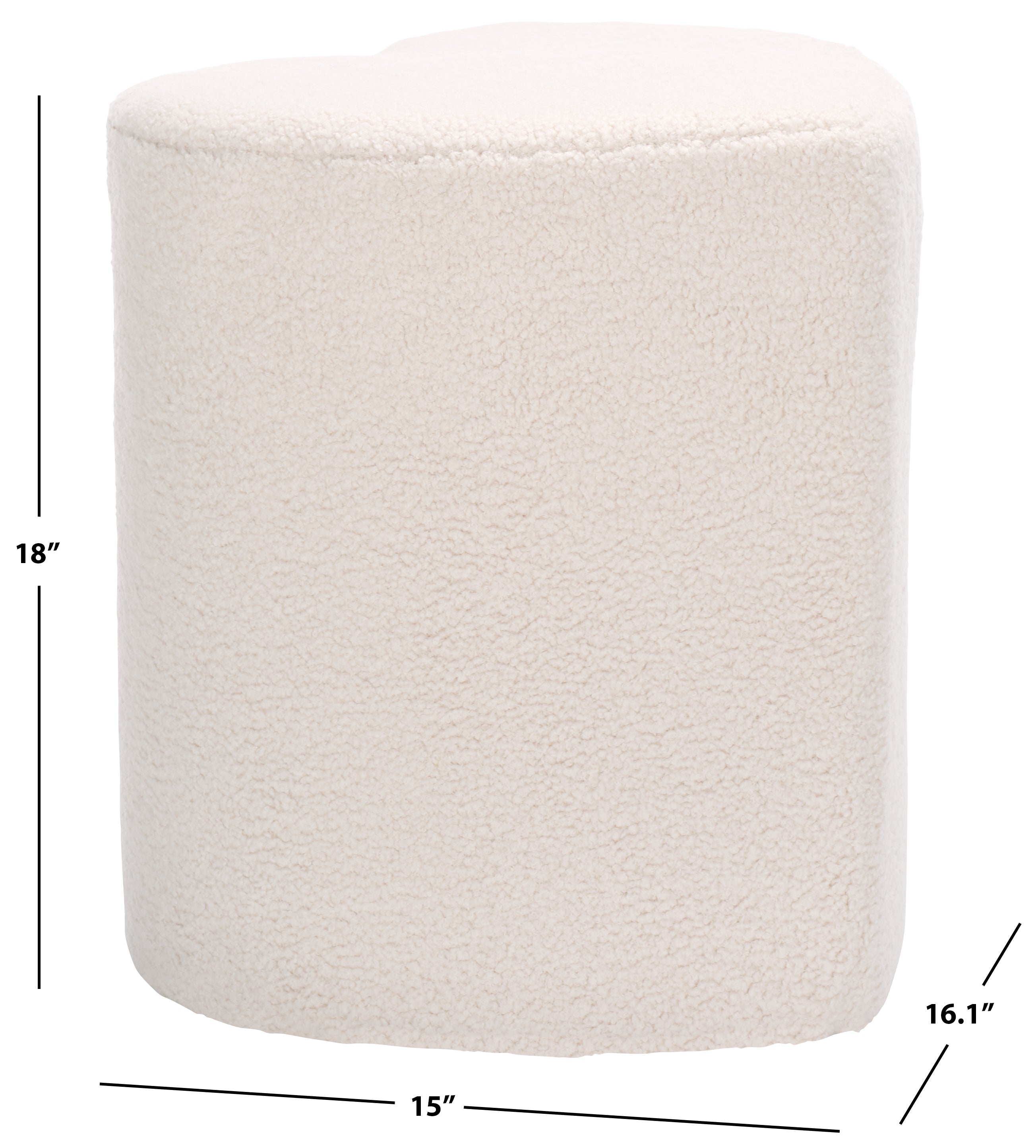Bring enduring style and comfort to your living space with our Milena heart-shaped ottoman. Our ottoman stands out and makes an adorable statement with a heart shape. It is upholstered in fluffy and richly textured sherpa fabric to serve as a cozy accent for any room. Showcasing a graceful ivory hue, our ottoman brings charming good looks and versatile functionality to a nursery, kids’ room, or lounge. It can serve as a comfy footstool, an extra seat, or a handy surface to hold a book or tray.