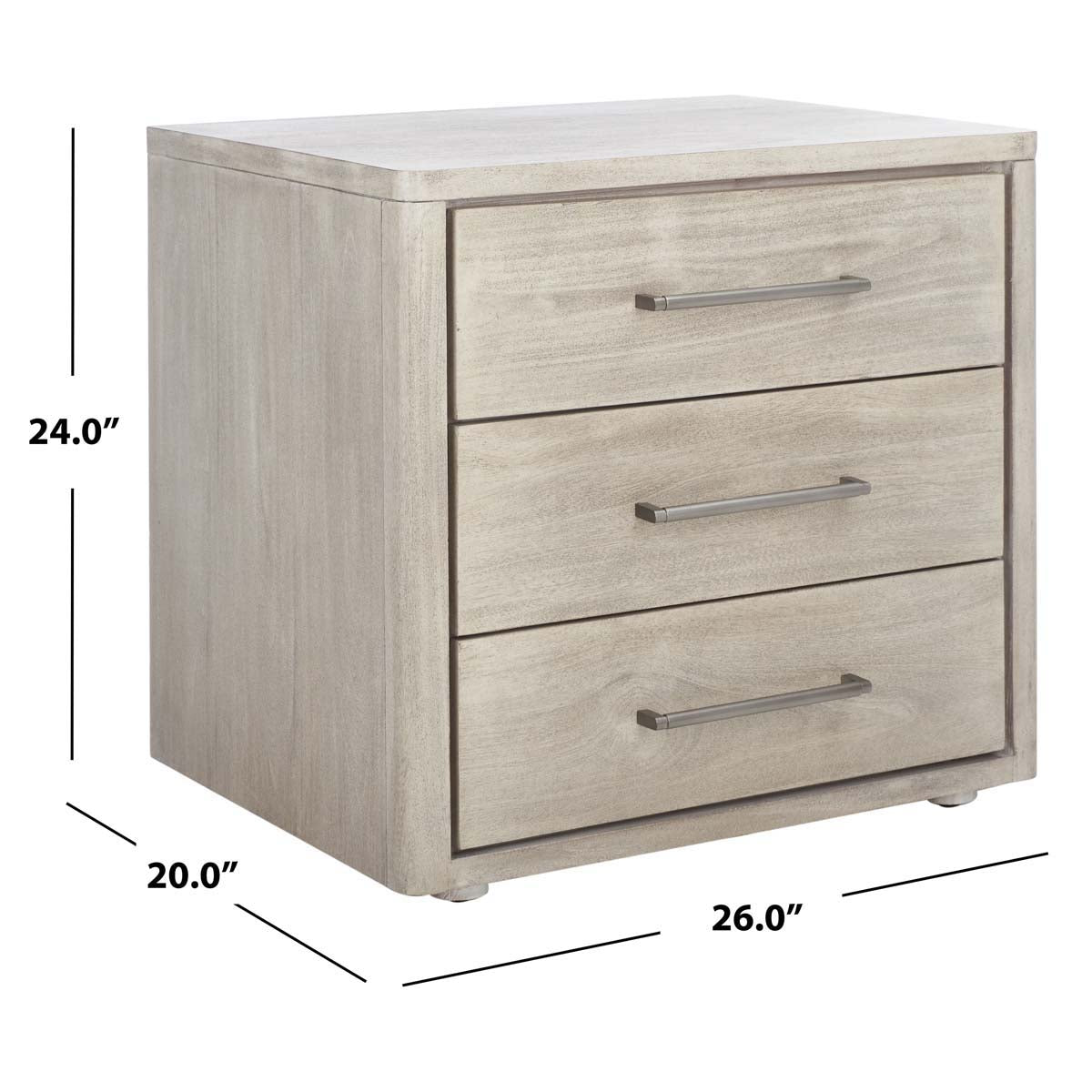 Safavieh Rosey 3 Drawer Wood Nightstand - Light Grey