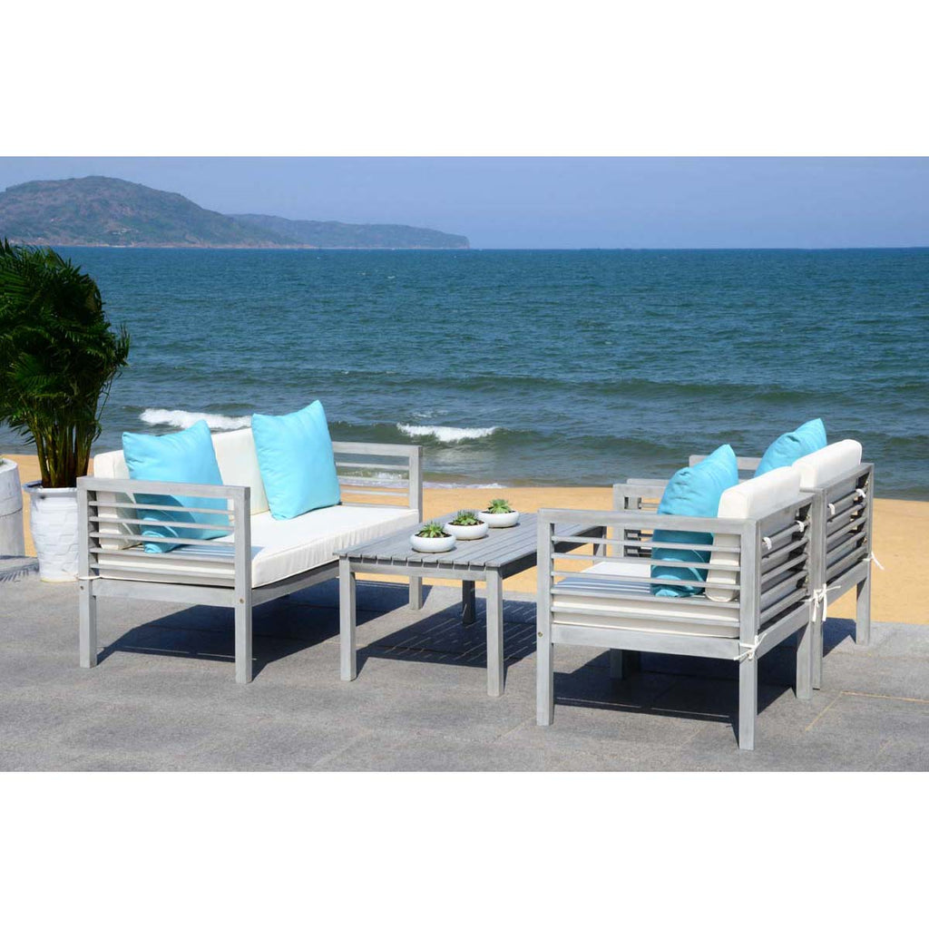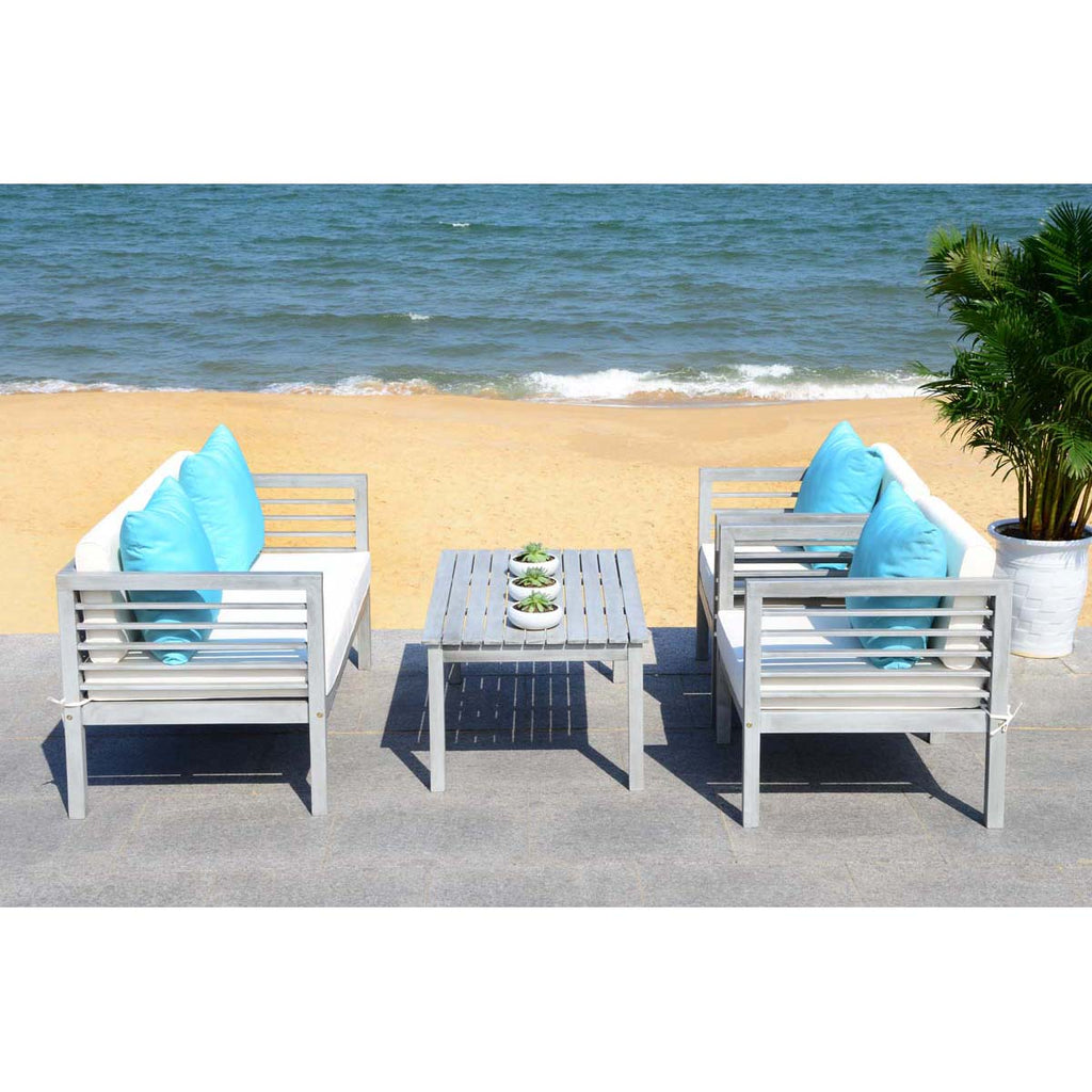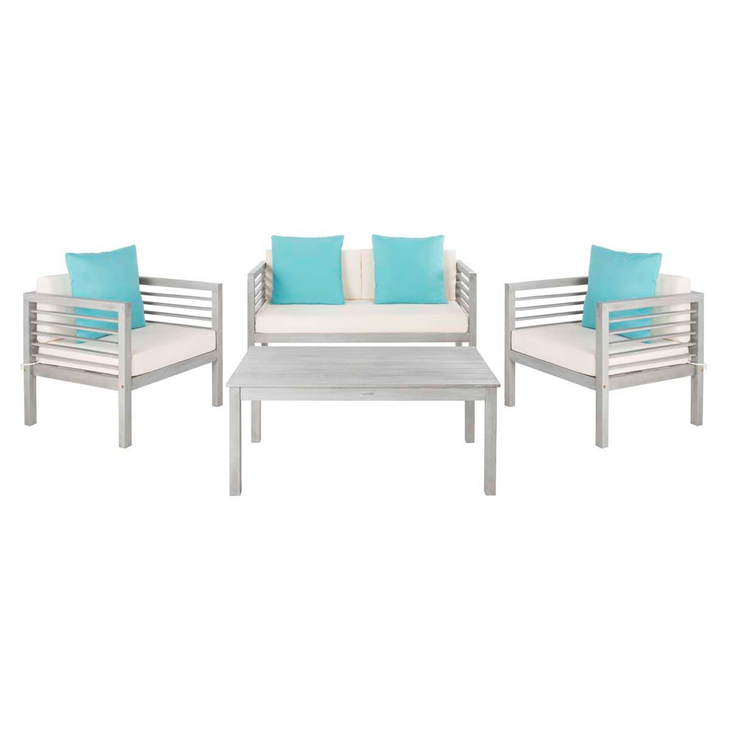 Safavieh Alda 4 Pc Outdoor Set With Accent Pillows - Grey Wash/Beige/Light Blue