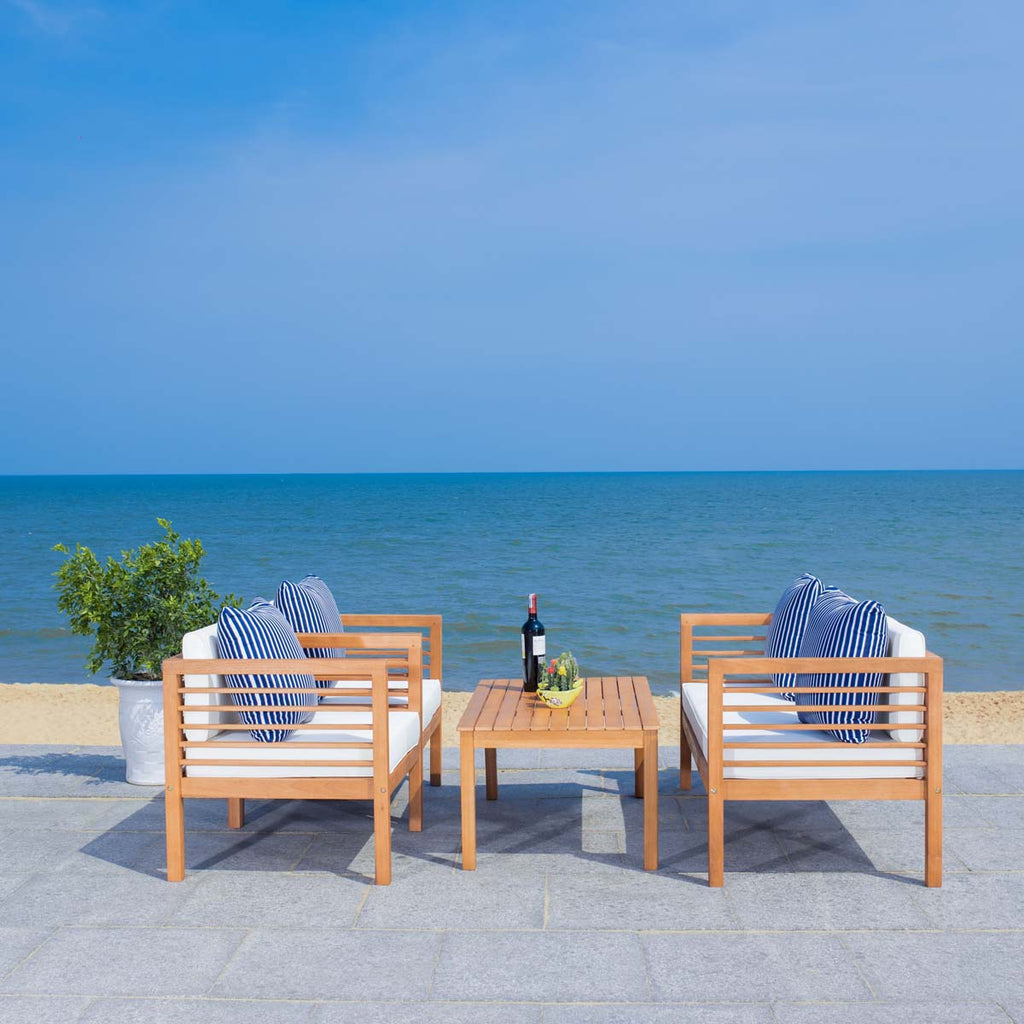 Safavieh Alda 4 Pc Outdoor Set With Accent Pillows - Natural/Beige/Nvywht