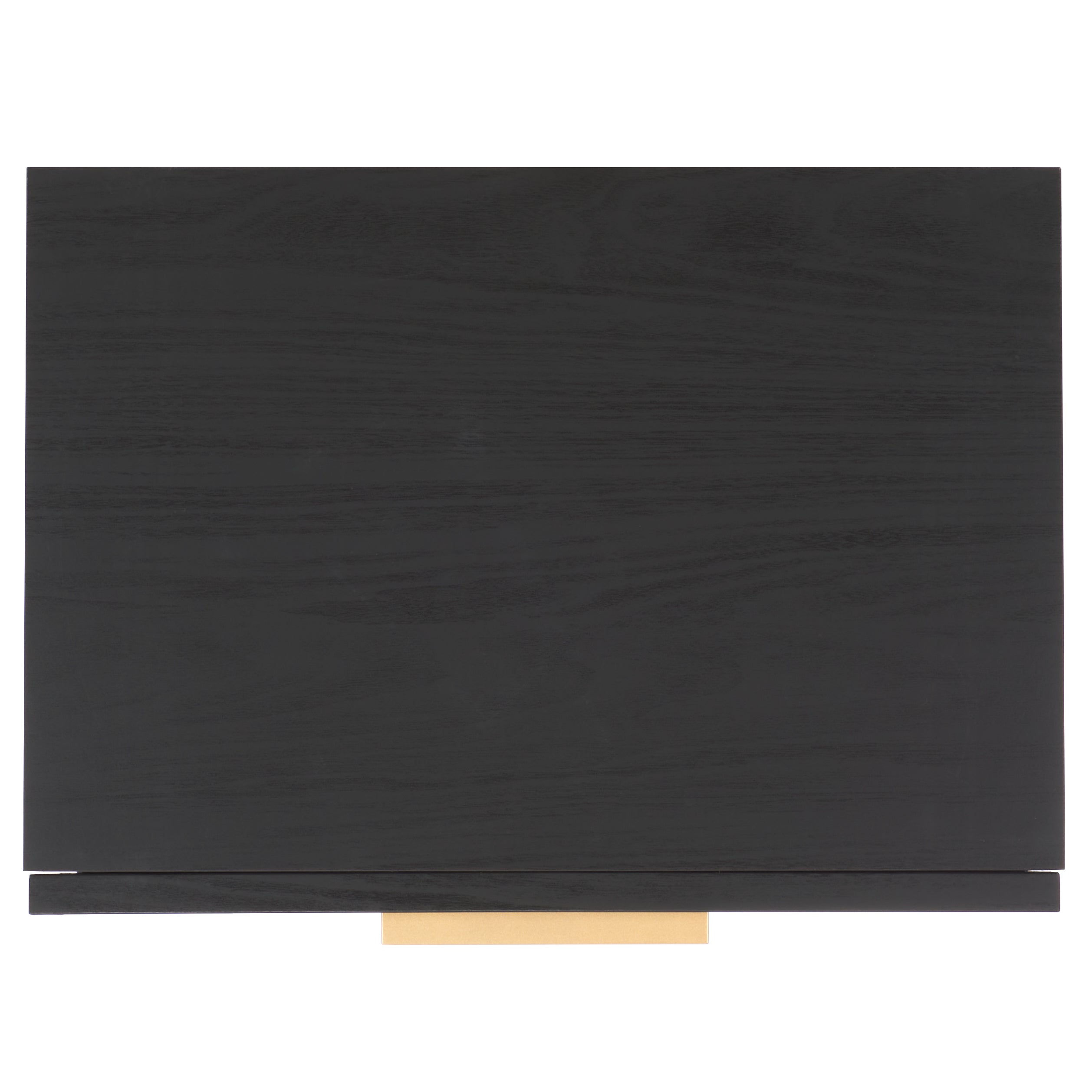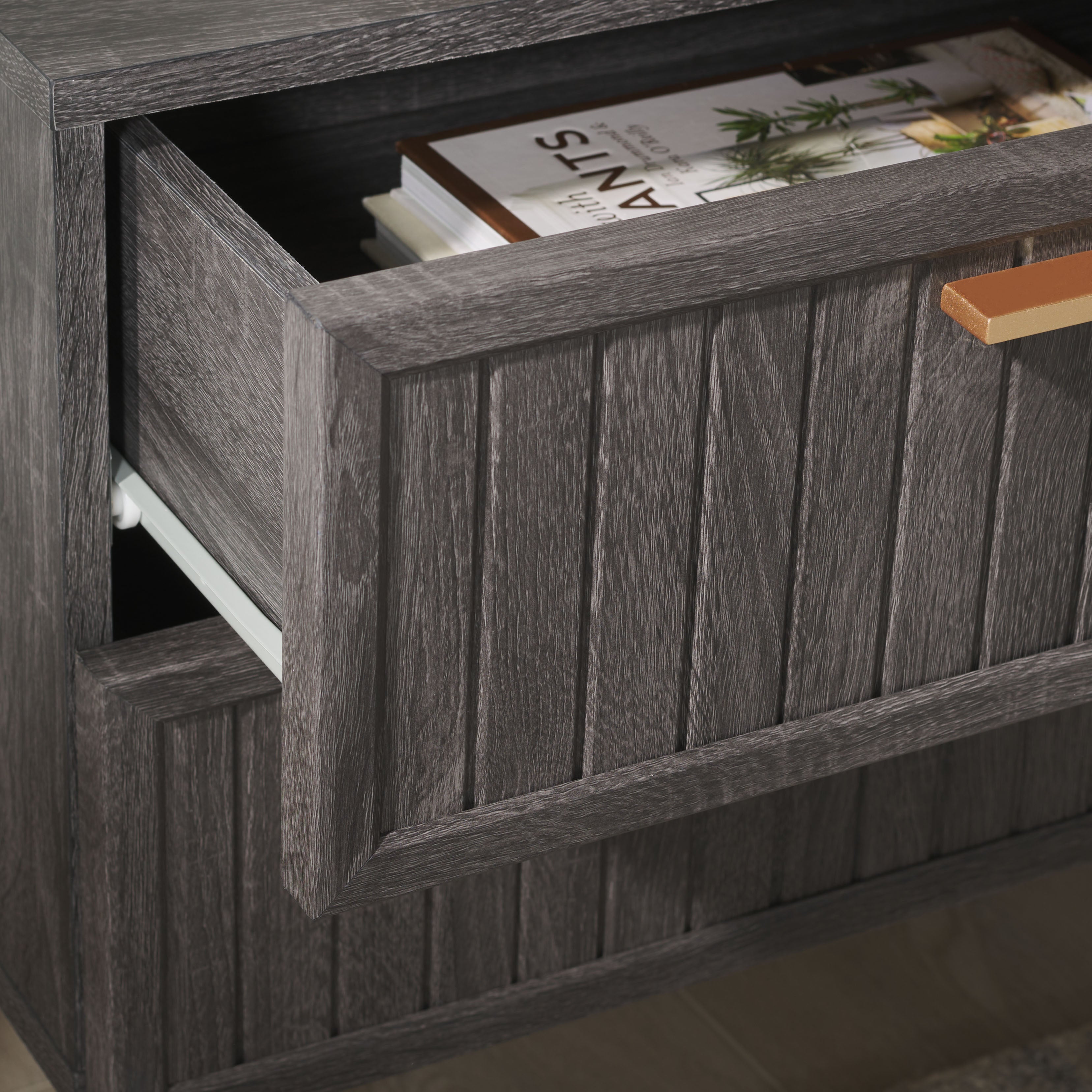 Uplift your bedroom with the sleek style and modern functionality of our Axelle nightstand. Crisp and clean-lined, our nightstand remains the perfect complement to any modern or contemporary bedroom. Wooden cladding on the facade adds a touch of sophistication to the modern side table. Completed with a rich finish, the nightstand beautifully showcases the organic grains of wood. It is perched upon black metal legs to attain a sleek and charming presence. Our nightstand features two roomy drawers to offer stylish and practical storage for any bedroom.