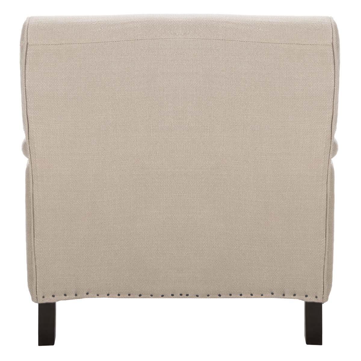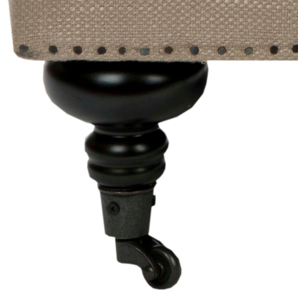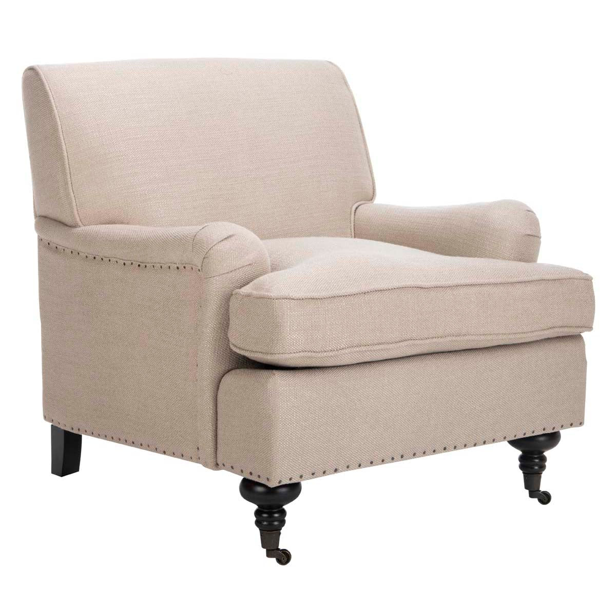Sit back and relax in the sophisticated yet inviting Chloe Club Chair. With turned birch wood legs on casters in a striking espresso finish, this transitional design features low arms and viscose linen cushions in antique gold with black nail head trim.