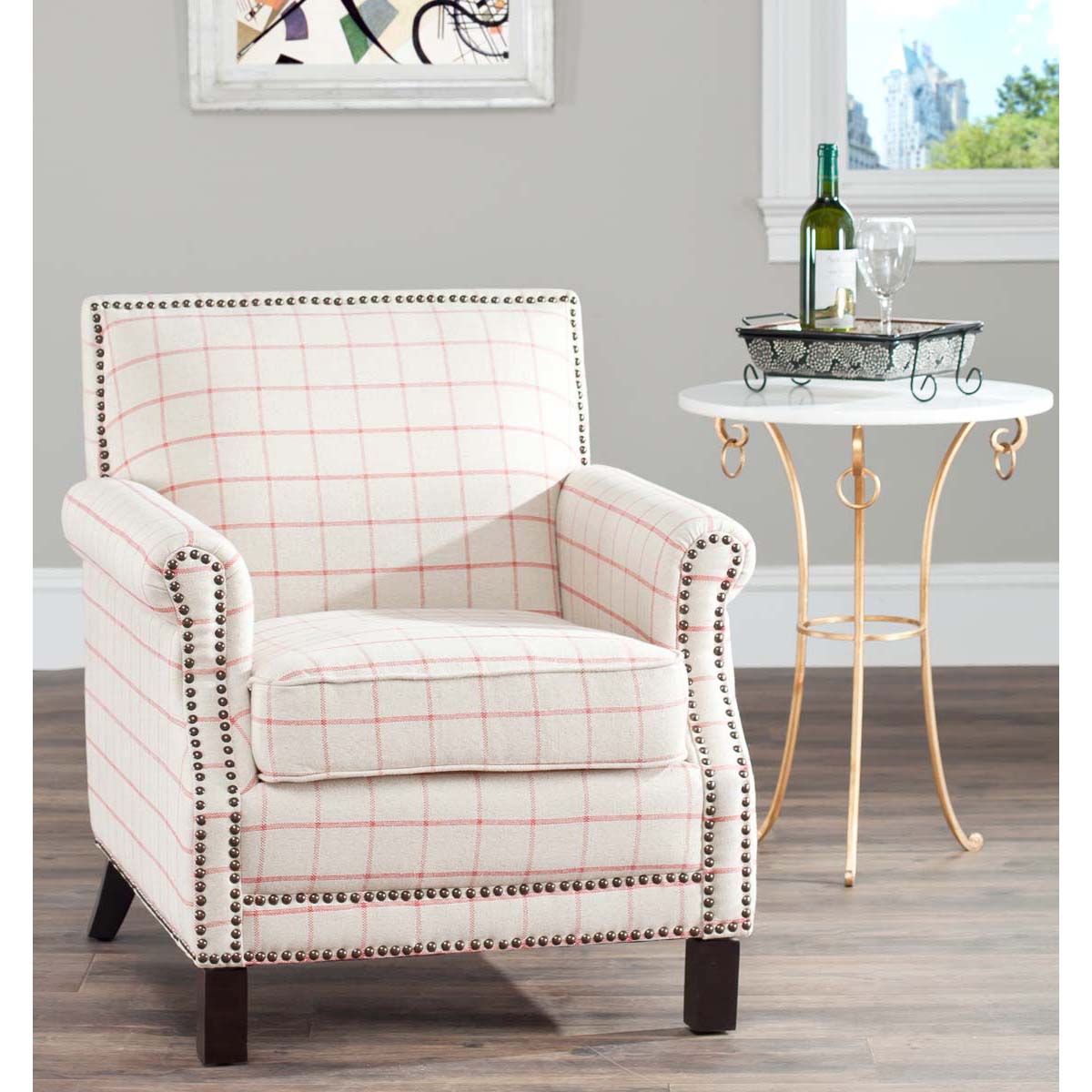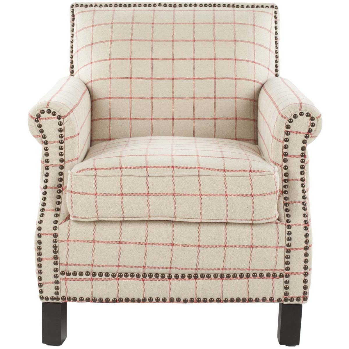 Safavieh Easton Club Chair In Plaid - Brass Nail Heads - Tan / Red