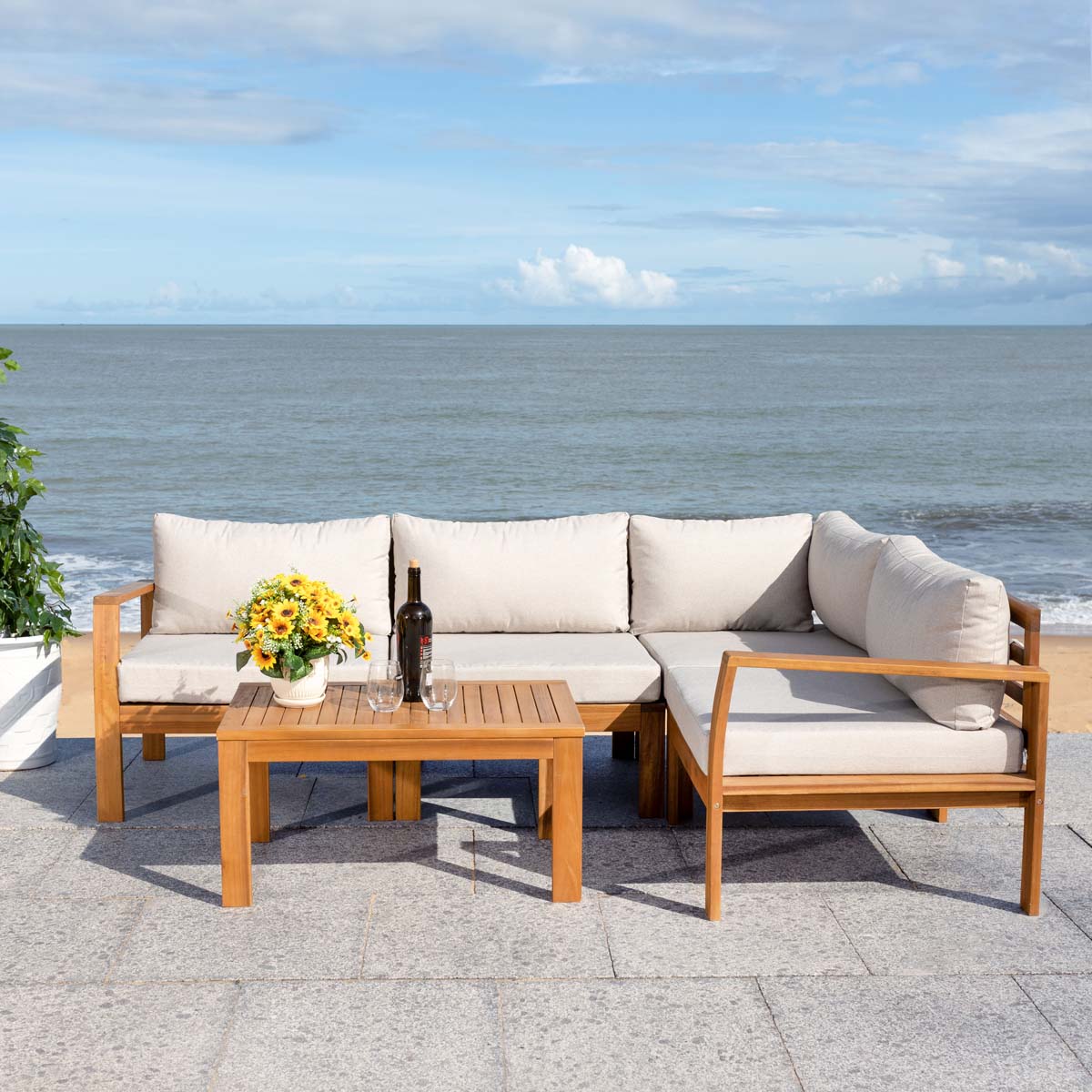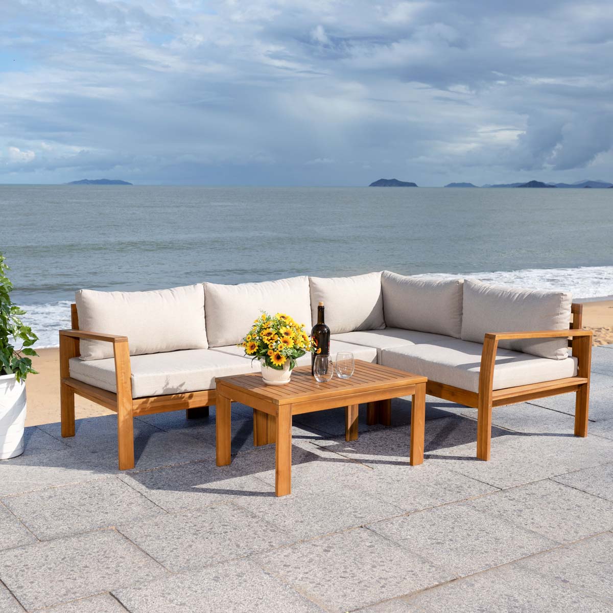 Safavieh Endelia Outdoor Living Set - Natural Wood/Light Grey Cushion