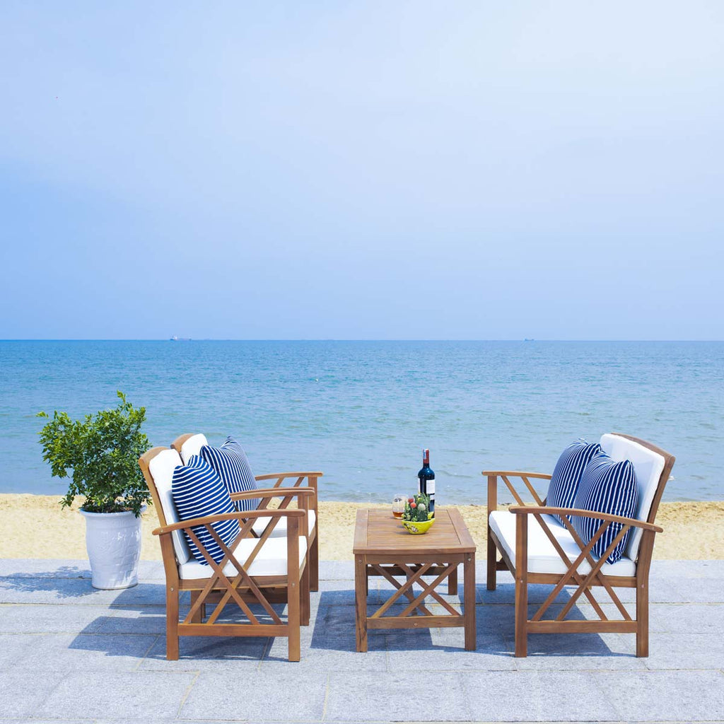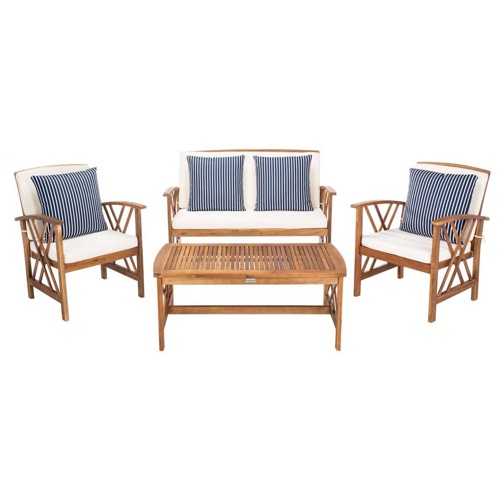Safavieh Fontana 4 Pc Outdoor Set - Natural/Beige/Nvywht