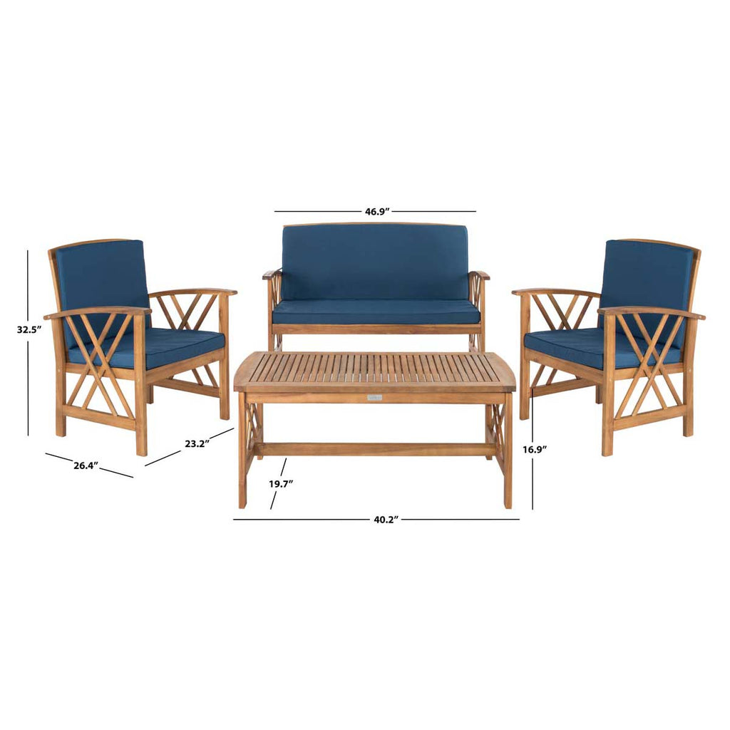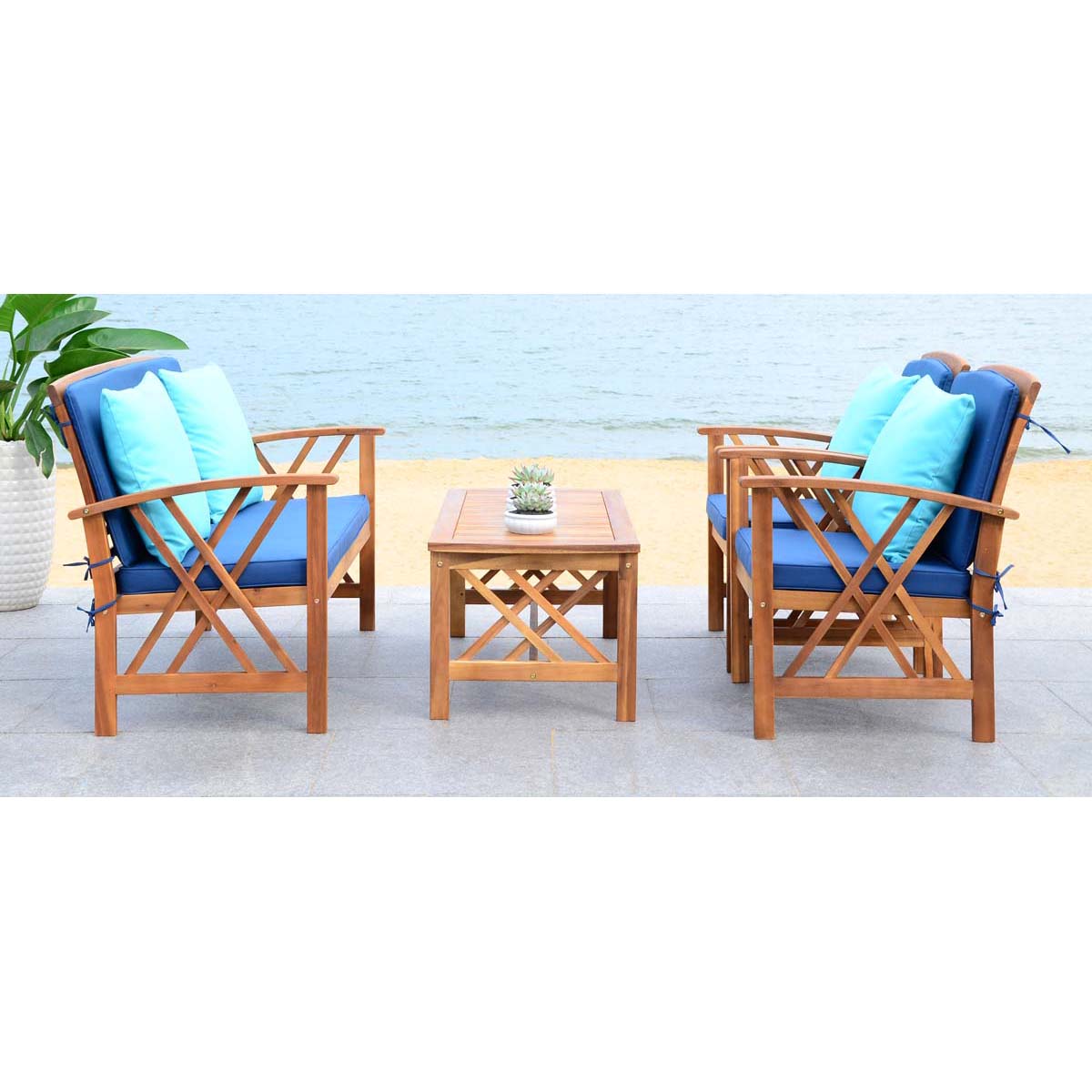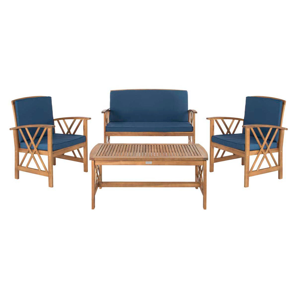 Safavieh Fontana 4 Pc Outdoor Set - Natural/Navy
