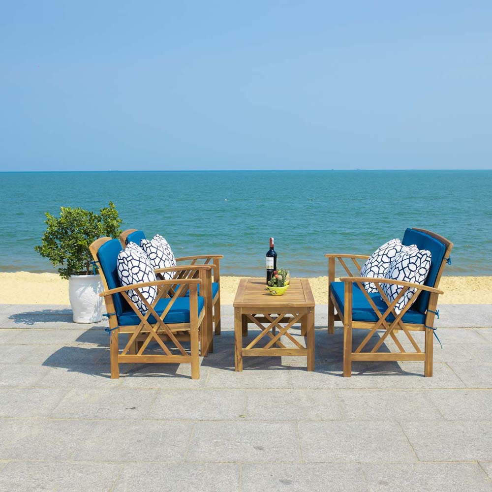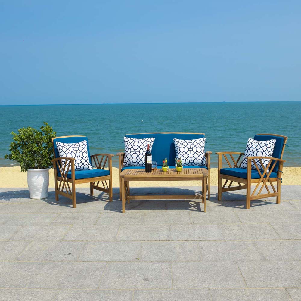 Safavieh Fontana 4 Piece Outdoor Set - Natural / Navy / Mosaic Pillow