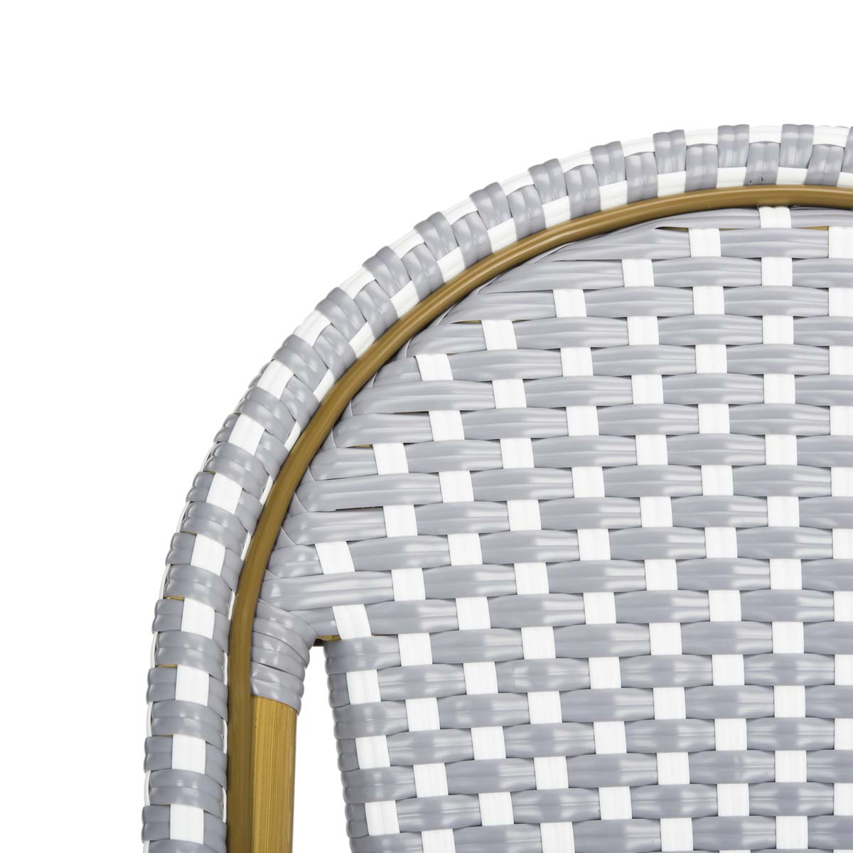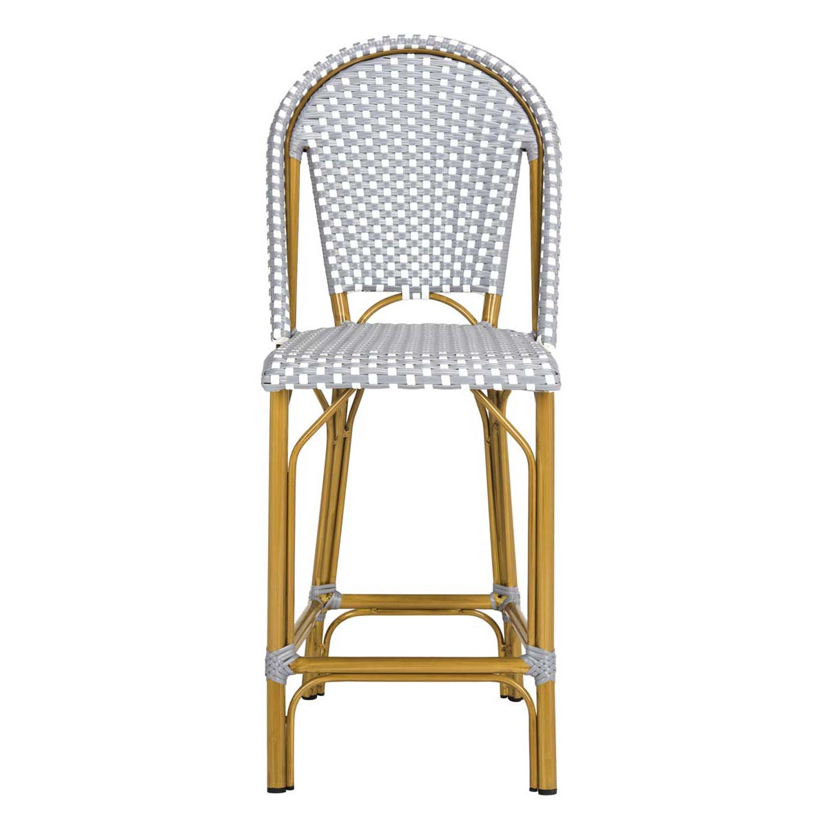 Raise your aperitif and toast to Parisian style with this indoor outdoor French bistro counter stool. Created for those seeking Gallic flair in any dining area, its grey and white design is paired with light brown wicker for an authentic look.