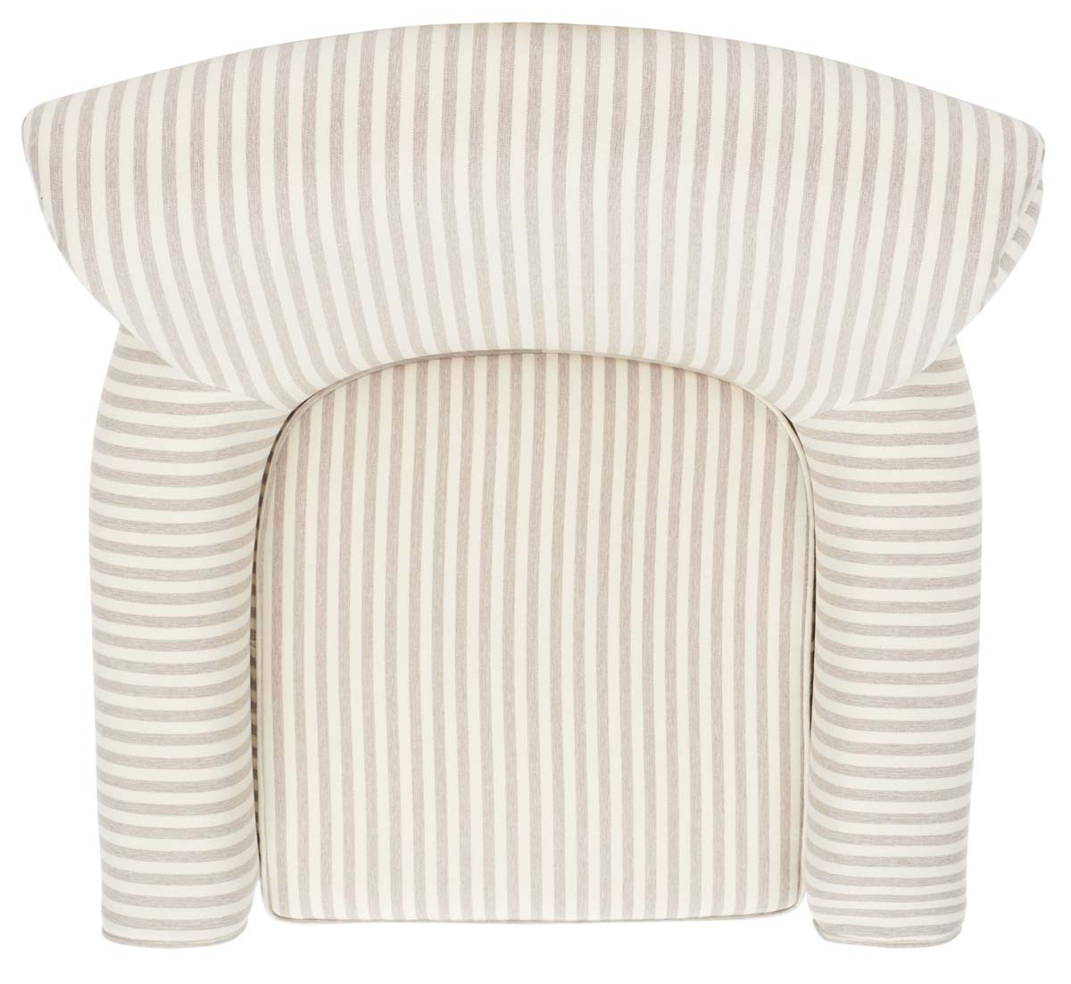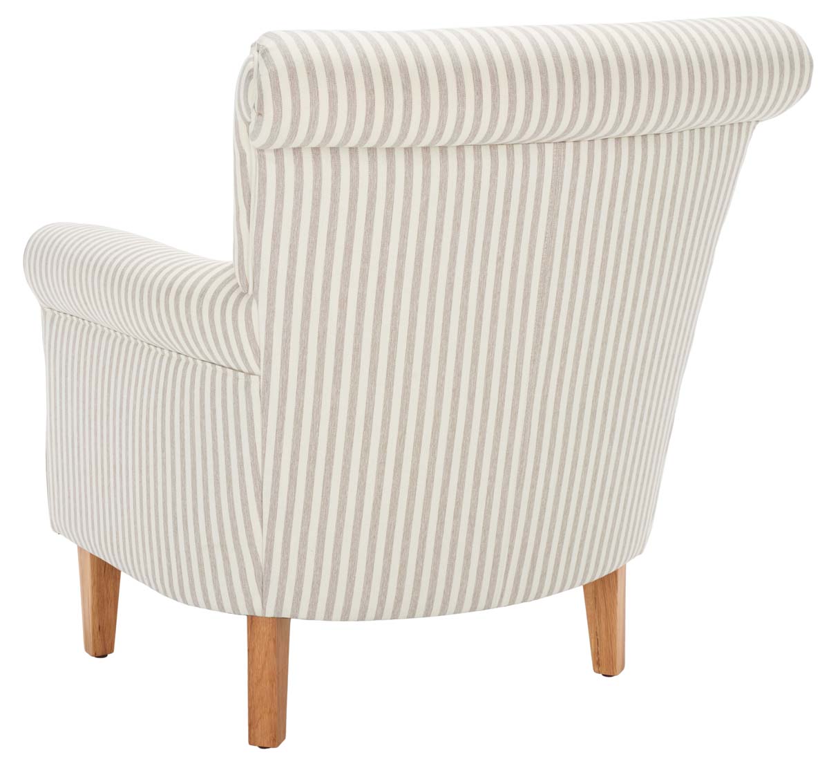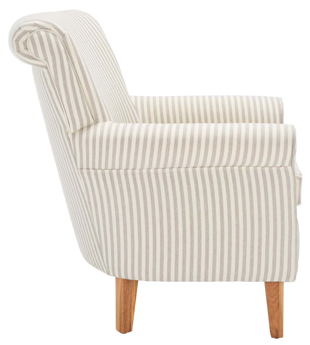 The Classic Roll Arm Of The Hazina Club Chair Gets Updated Thanks To A Modern Beige Stripe Pattern In A Luxurious Blend Of Linen And Viscose. Standing Atop Espresso-Finished Legs, Hazina Is Glorious In The Living Room, Family Room, Or Master Suite.