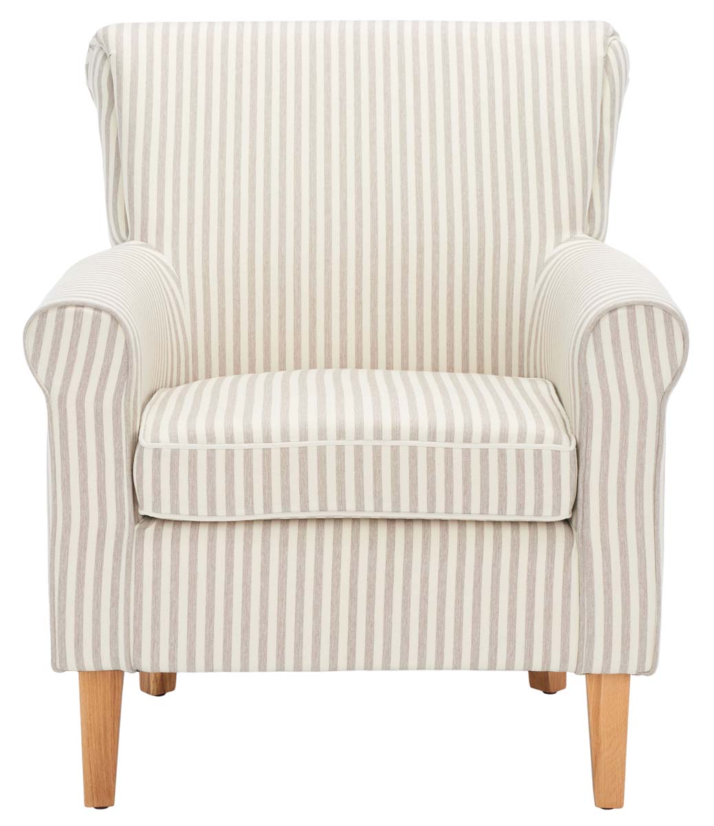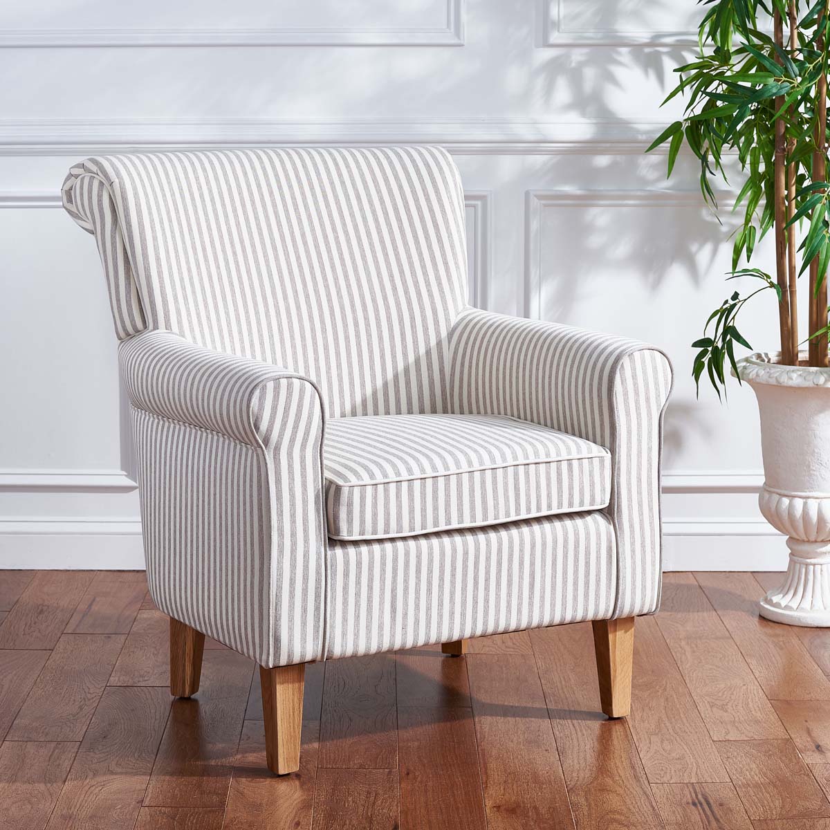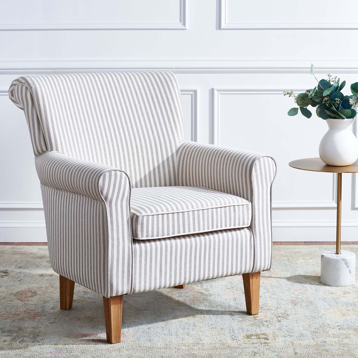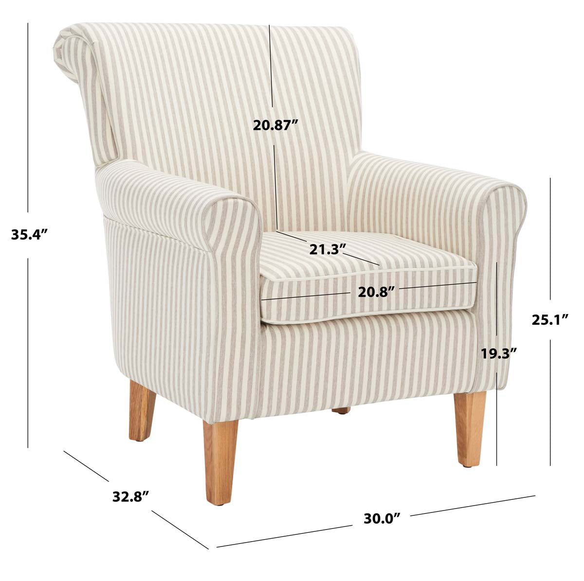 The Classic Roll Arm Of The Hazina Club Chair Gets Updated Thanks To A Modern Beige Stripe Pattern In A Luxurious Blend Of Linen And Viscose. Standing Atop Espresso-Finished Legs, Hazina Is Glorious In The Living Room, Family Room, Or Master Suite.