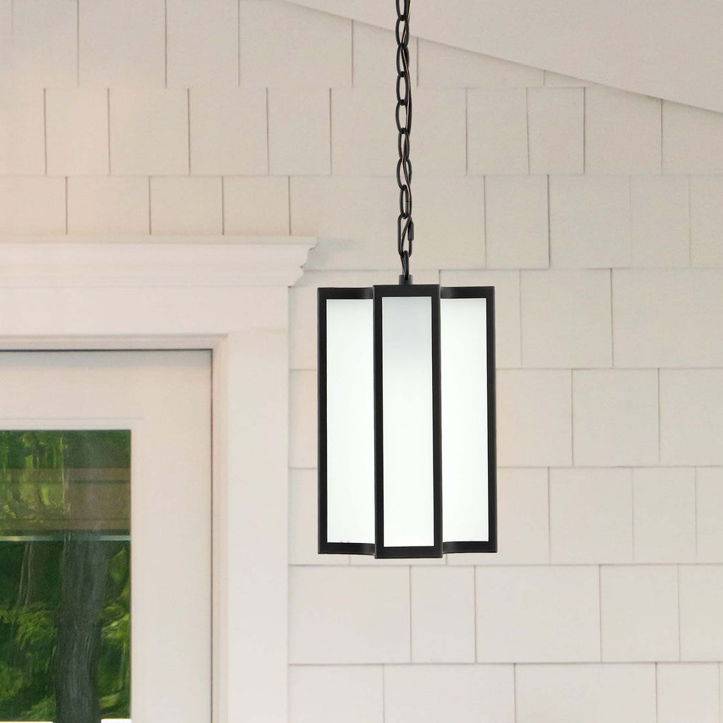 Illuminate and beautify your home with our charming Hyla extendable outdoor pendant light. The stunning pendant moves away from a conventional lantern silhouette for an elegant cross shape. Hanging from a looped chain, our pendant light is finished off with a sleek black coated finish and clear glass. It serves as an elegant and charming detail, lending a filtered and pleasant glow to your outdoor living area.