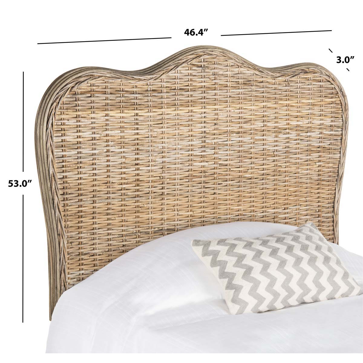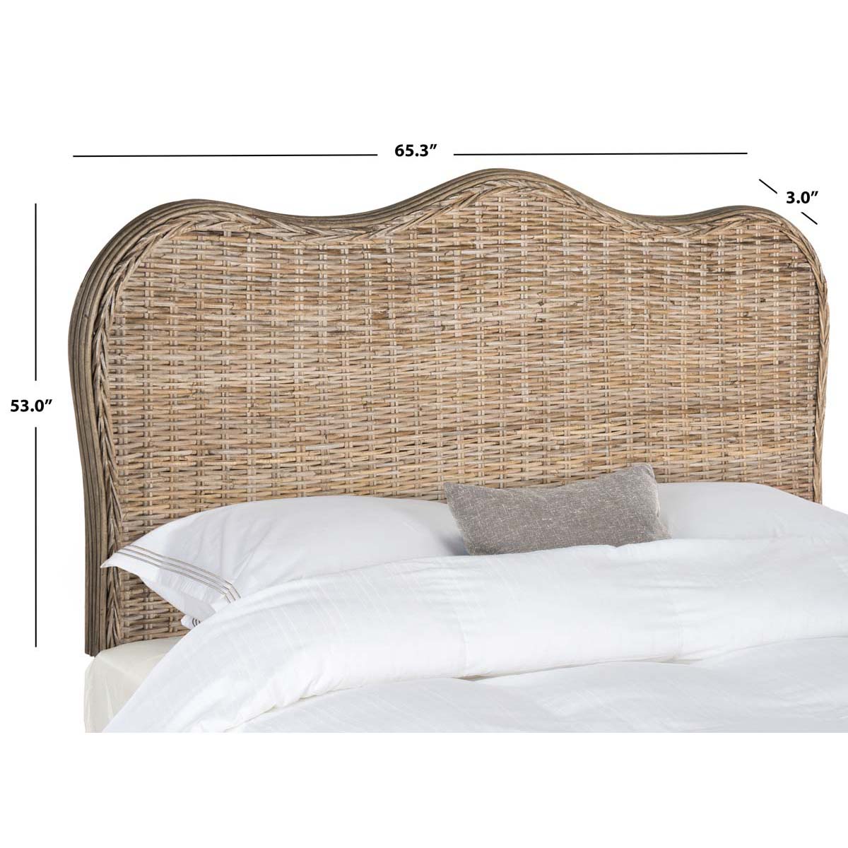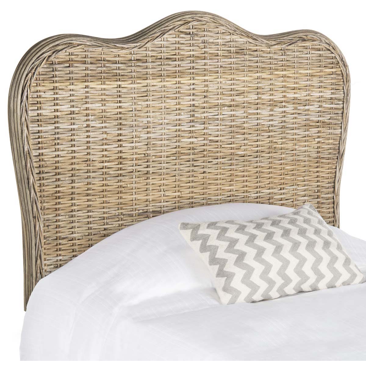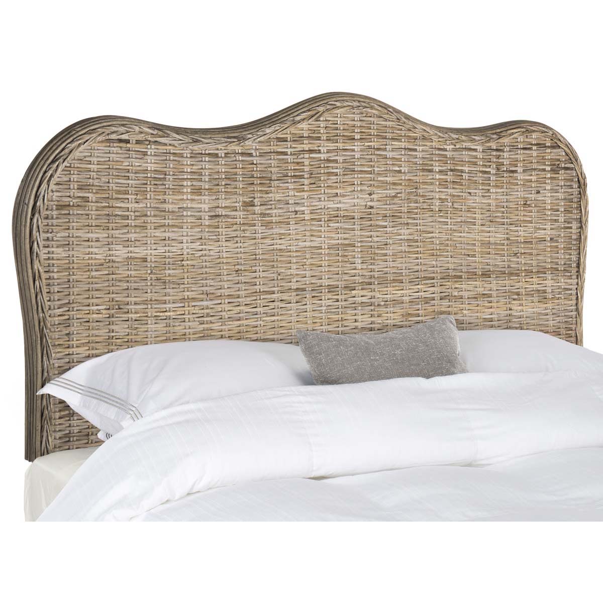 The classic size camelback headboard is refreshed with the hand-crafted look and texture of woven Kubu rattan in pretty grey tones, with rattan poles and hardwood details. This versatile headboard can be dressed up or down for city or country homes.,The classic size camelback headboard is refreshed with the hand-crafted look and texture of woven Kubu rattan in pretty grey tones, with rattan poles and hardwood details. This versatile headboard can be dressed up or down for city or country homes.
