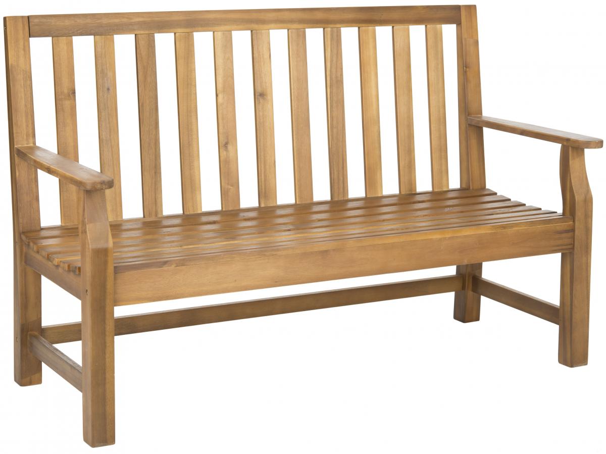 Though an English garden classic in every detail, the Indaka bench is designed with clean minimalist lines will complement traditional, Mission and transitional decor in outdoor spaces. Slatted back and seat are ample and comfortable in this well proportioned piece crafted of sustainable acacia wood in natural finish with galvanized hardware.