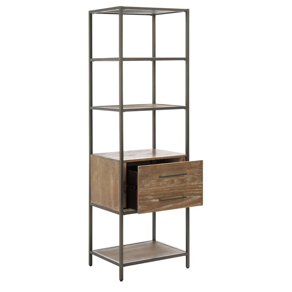 Safavieh Jola 5 Shelf 1 Drawer Etagere - Rustic Oak / Gunmetal