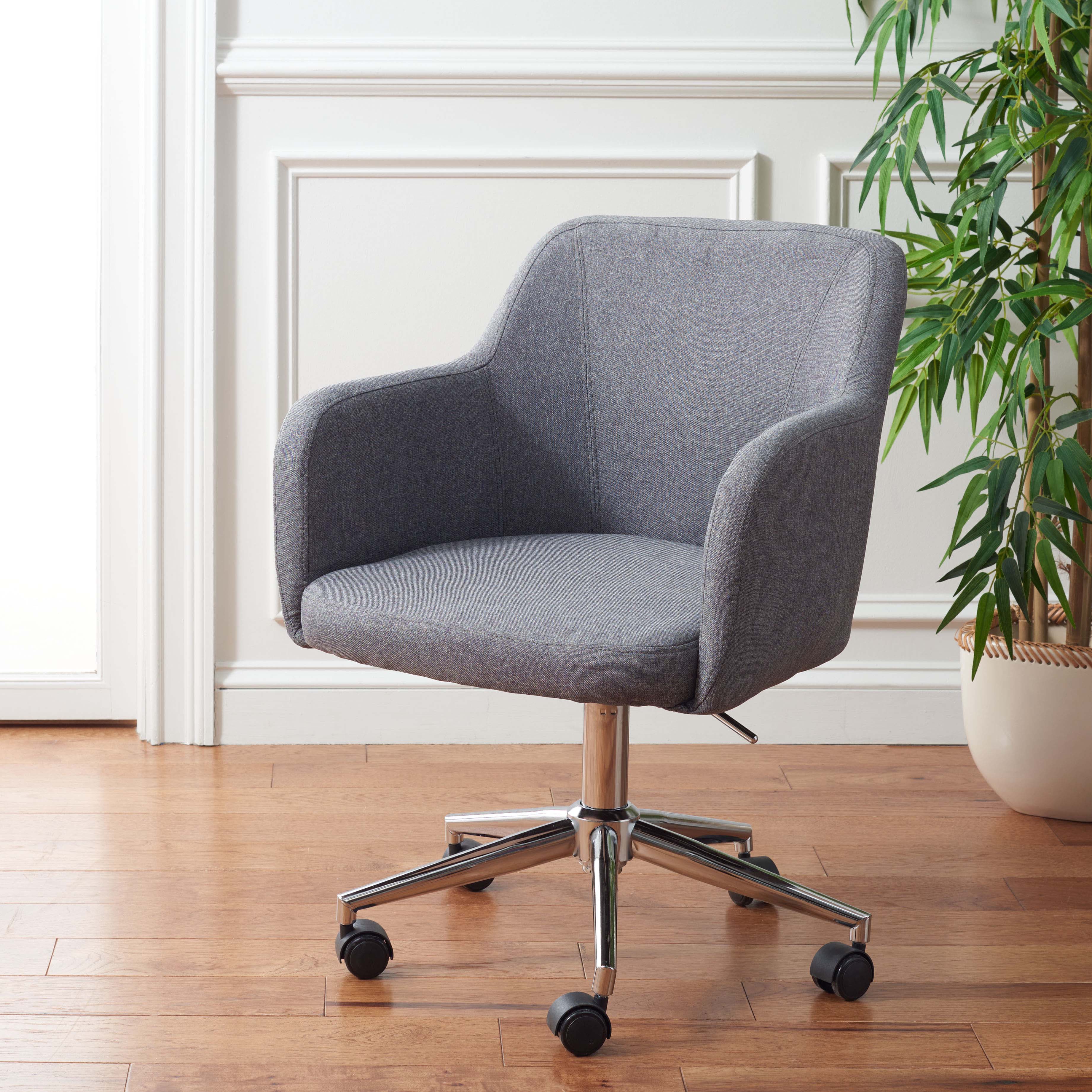 Who said desk jobs couldn's be stylish. This Kains Office Chair effortlessly elevates your workspace's decorative aesthetic with lasting comfort and modern chic. Soft grey linen makes hours of hard work feel like minutes, and a chrome swivel base adds a touch of shine.