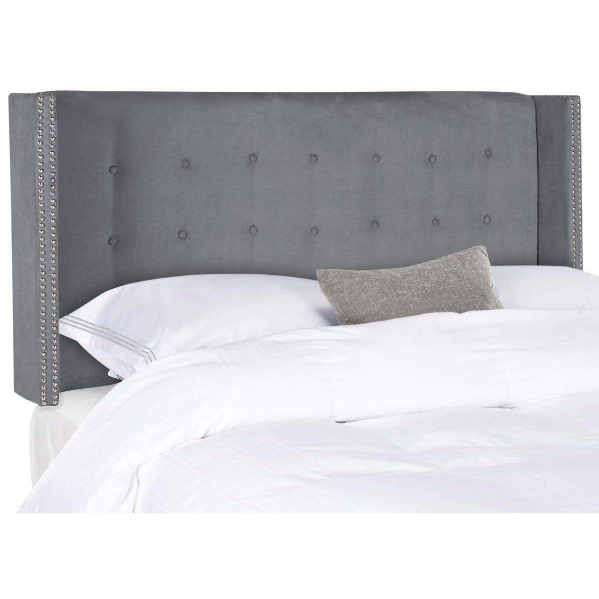 Safavieh Keegan Grey Velvet Tufted Winged Headboard Silver Nail Head Grey Velvet