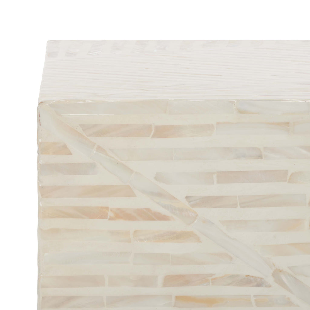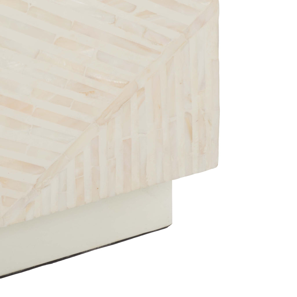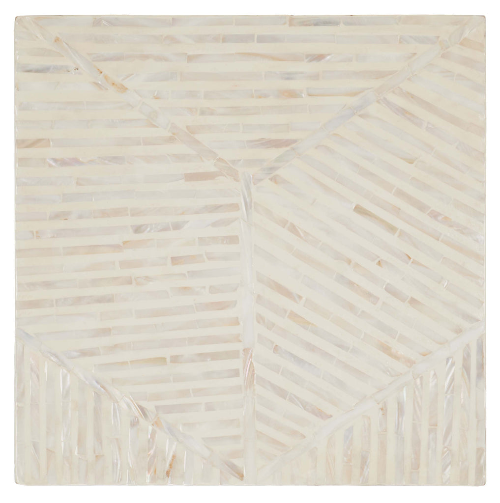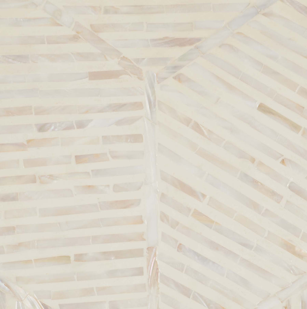 Elevate your homes aesthetic elegance with this striking Kiely Stool. Flaunting champagne mother-of-pearl inlay in a stepped tile pattern within oversized chevrons, Kielys subtle shimmer gives any decor a touch of decadence. Designers love using them in pairs for coastal-contemporary interiors.