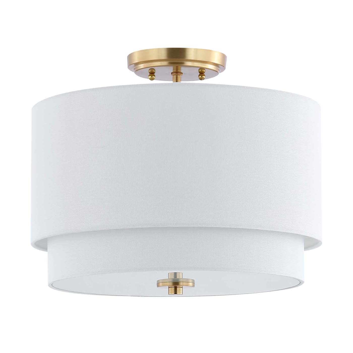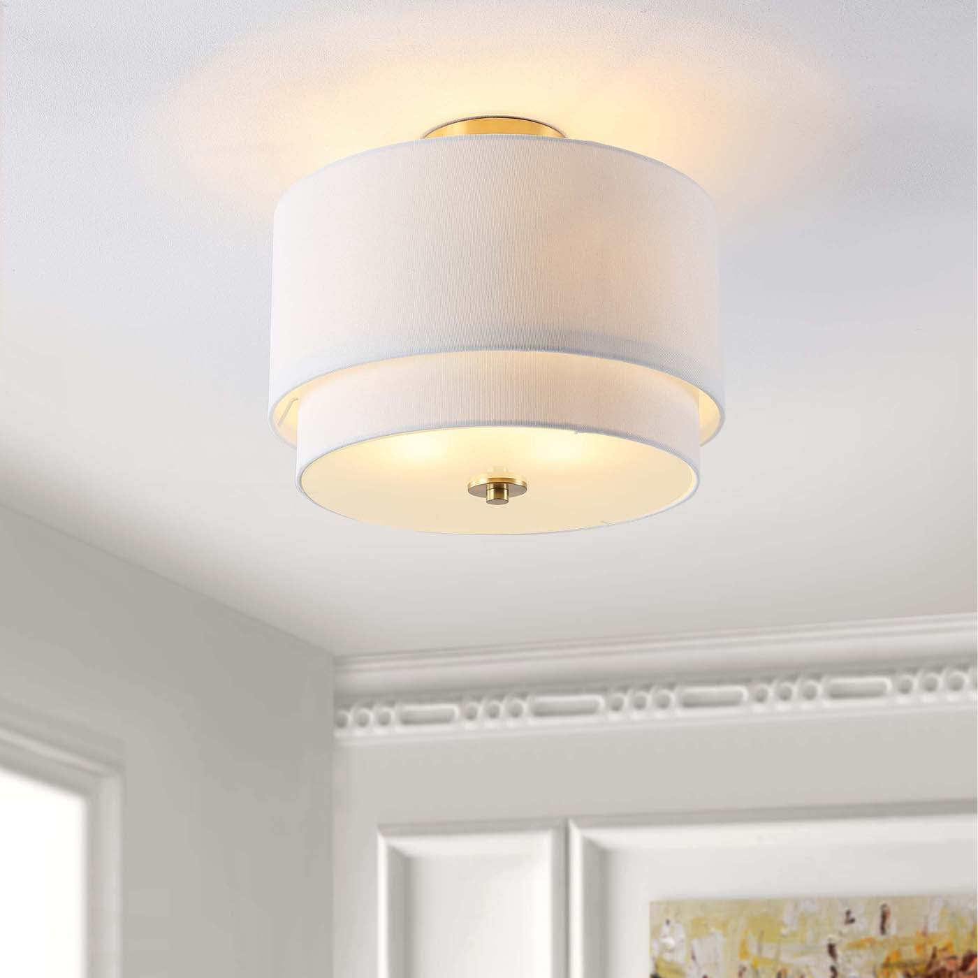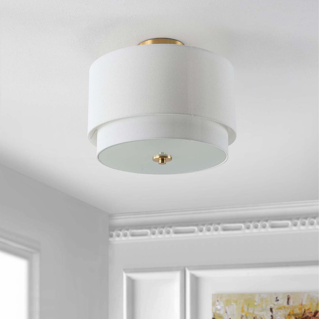 Designed to perfectly suit every d?cor style, this Laconia Flush Mount is a staple in any contemporary interior. Laconia?? concentric off-white fabric shades and shimmering gold finish add a touch of depth and intrigue to its classic design.