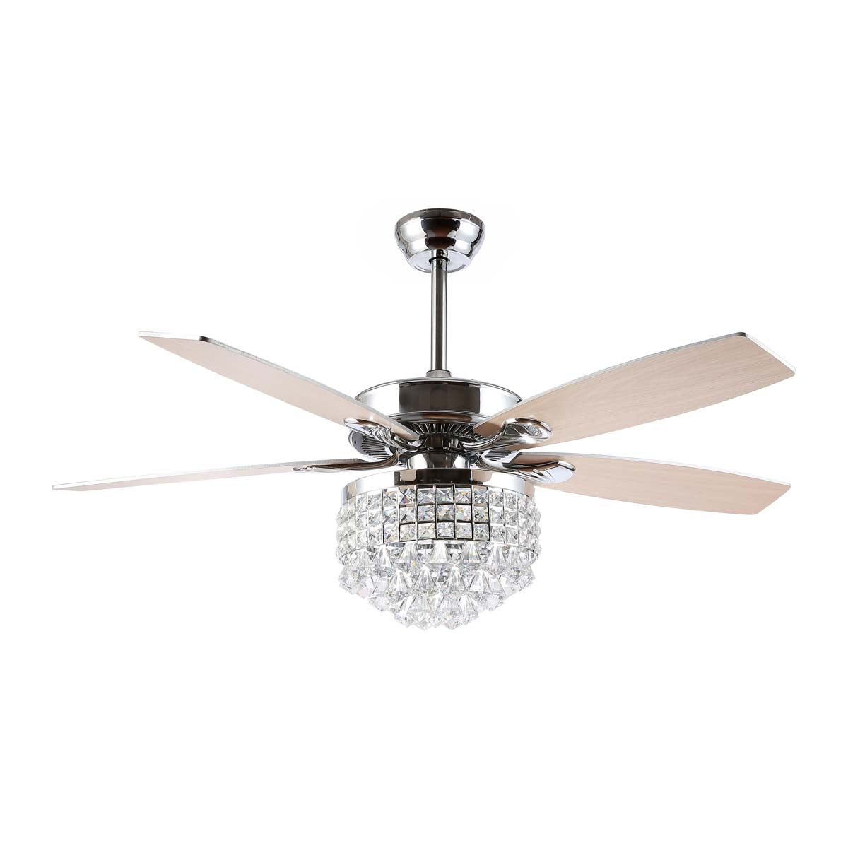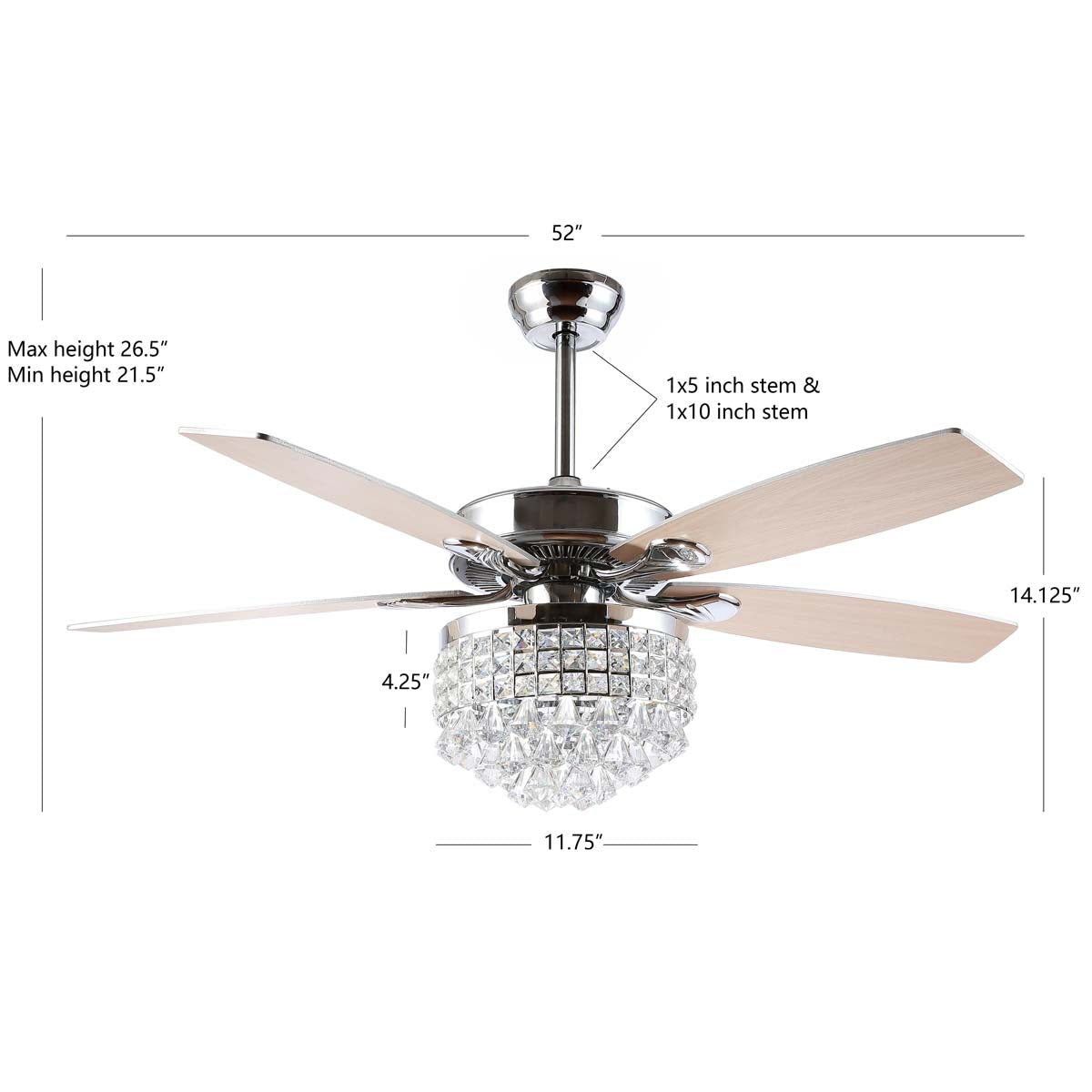 Crystal lights dangle decadently through a chrome honeycomb lattice in this Lanzer Ceiling Light Fan, casting a spellbinding shine on any d?cor. Lanzer?? tiered diamond inspired crystals give an additional sense of depth, and white maple blades bring a touch of farmhouse charm to its ultra glamorous design.