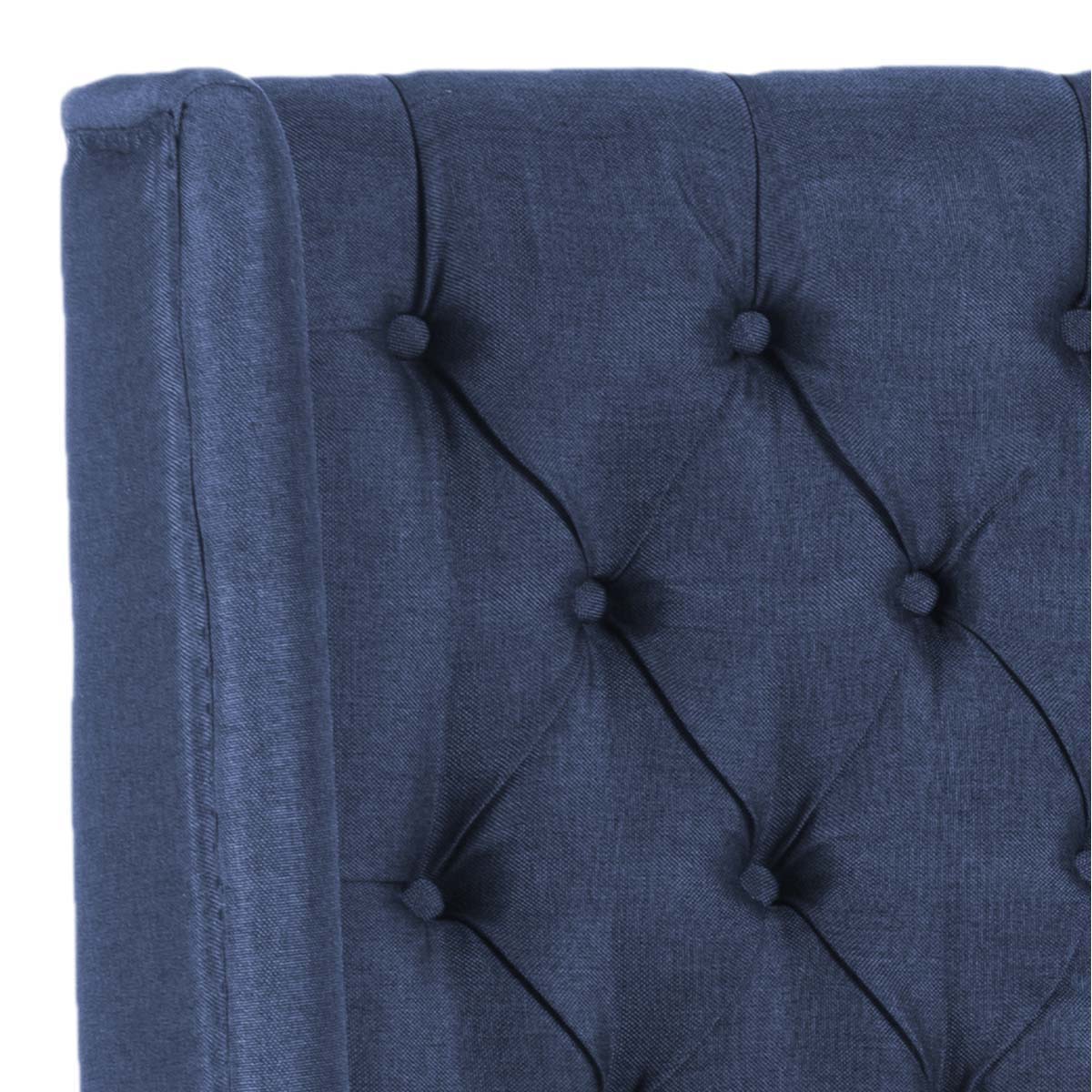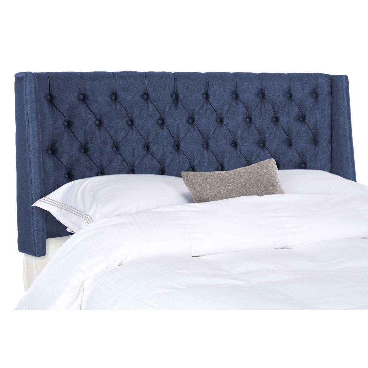 Safavieh London Navy Linen Tufted Winged Headboard - Flat Nail Heads - Navy