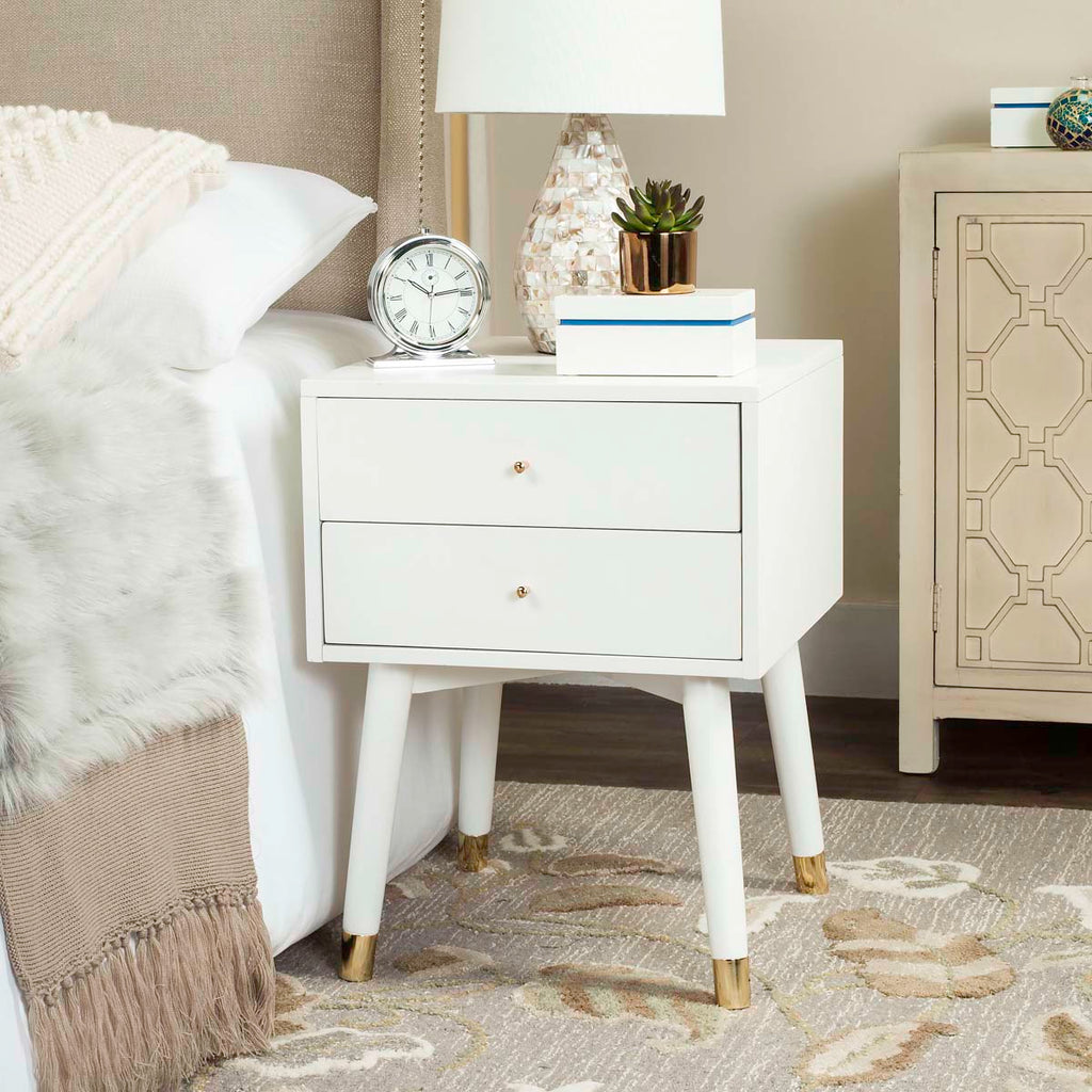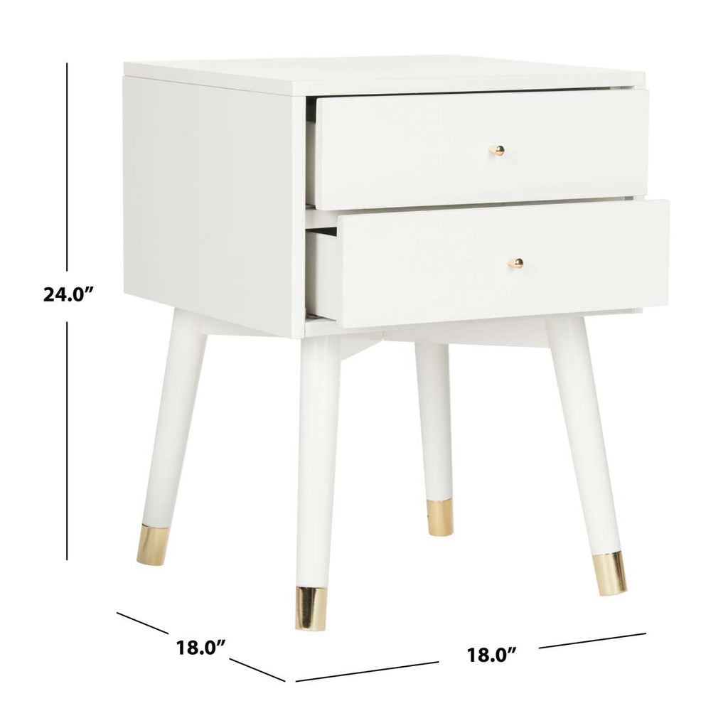 Safavieh Lyla Mid Century Retro Gold Cap Nightstand - White/Gold