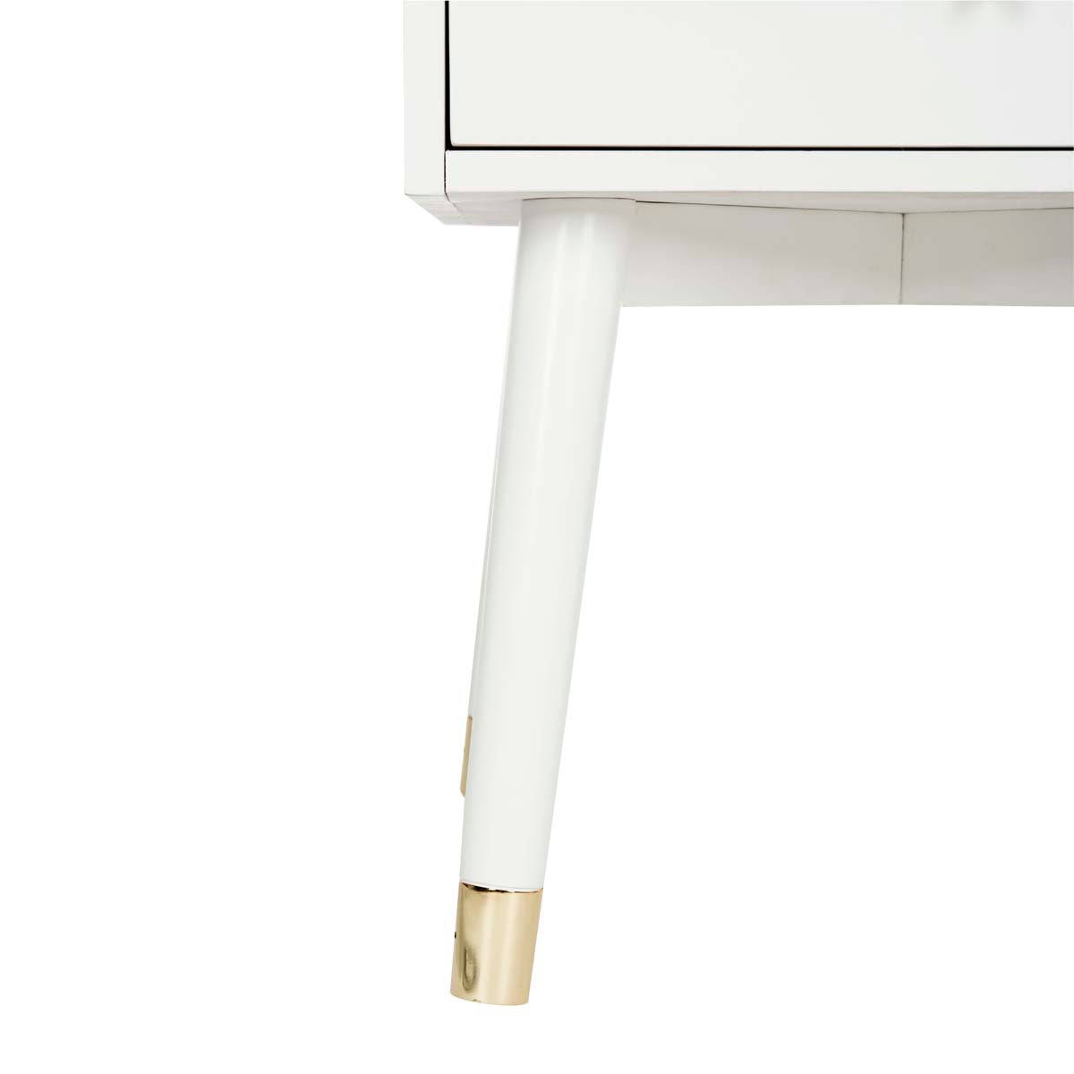 A Mid Century favorite, this Lyla Two Drawer Nightstand was inspired by vintage Italian designs. Dressed in clean white, the gold metallic accents on its subtly splayed legs bring instant decorative impact to any space.