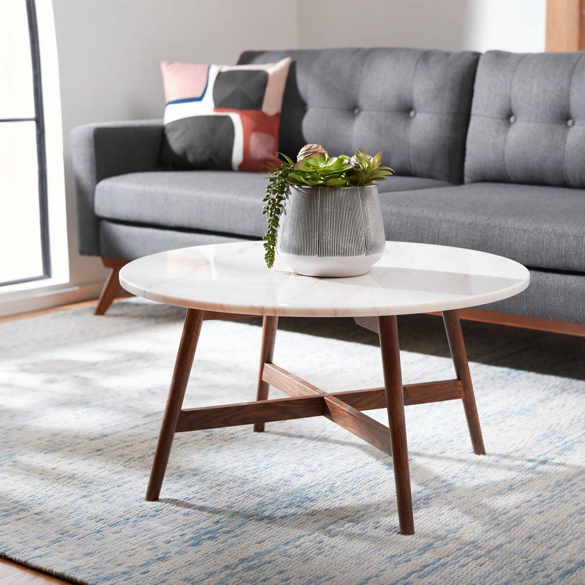 Safavieh Maja Round Marble Coffee Table - Marble / Walnut