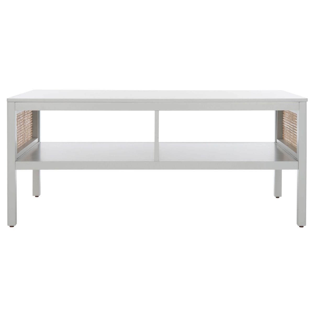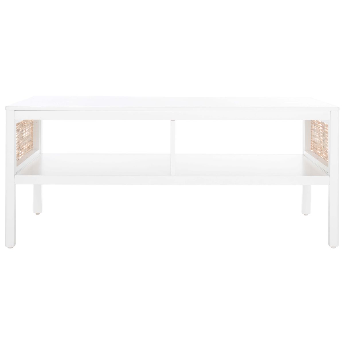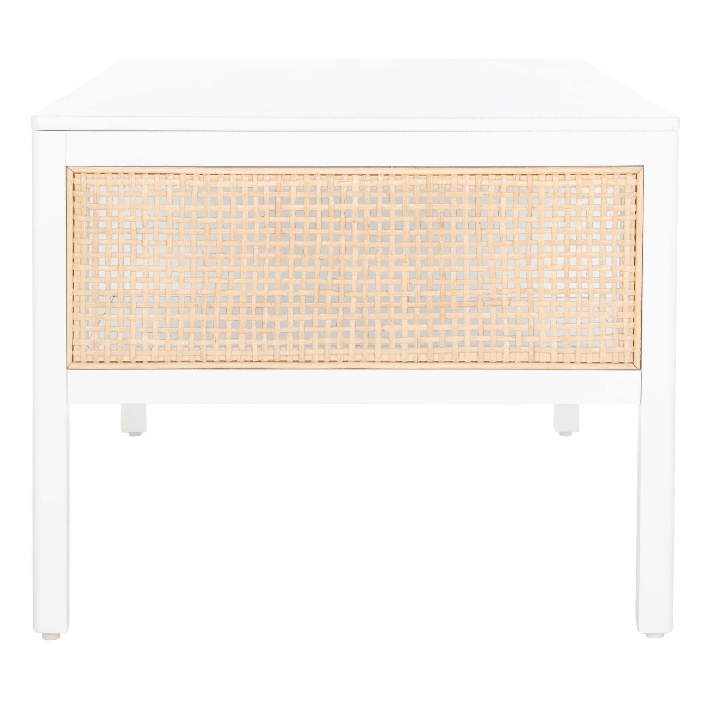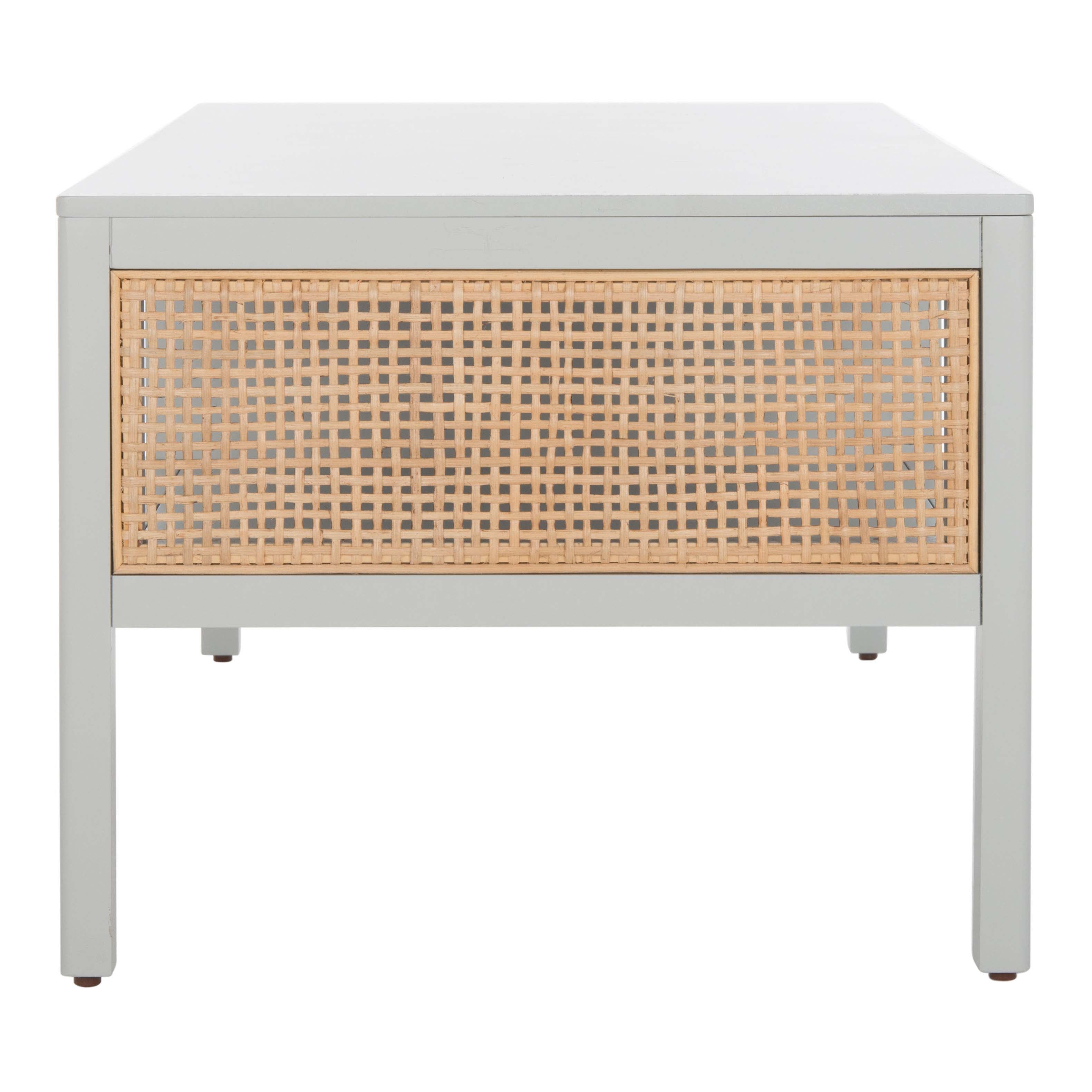 Make a warm and refined statement with our stylish Miya coffee table. Our sleek and streamlined coffee table stands out with a rich textural appeal. A beautiful rattan mesh is juxtaposed against a natural veneer to serve as a warm and inviting centerpiece. Its minimalistic profile evokes relaxed refinement to sit easily in your casual living space, family dens, and bedroom. Our coffee table features two large open shelves to keep your remotes, coasters, and other essentials within easy reach.