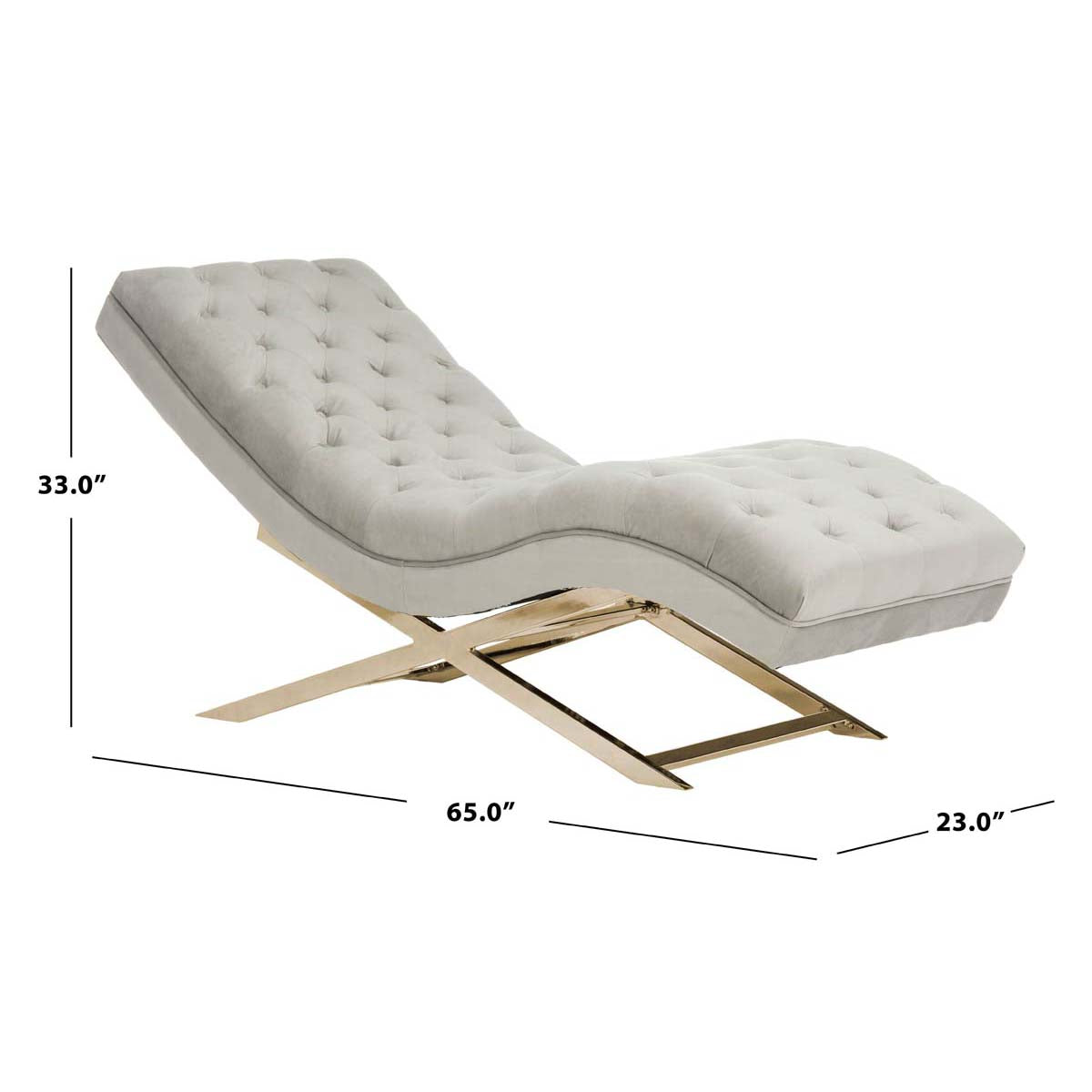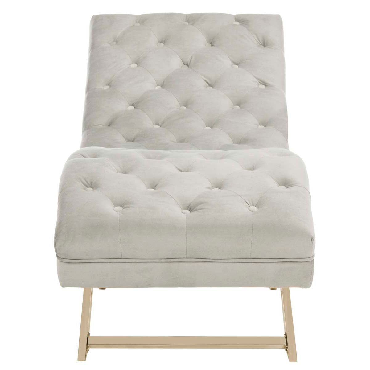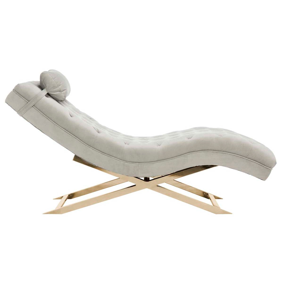 Safavieh Monroe Chaise W/ Headrest Pillow - Grey Velvet/Brass
