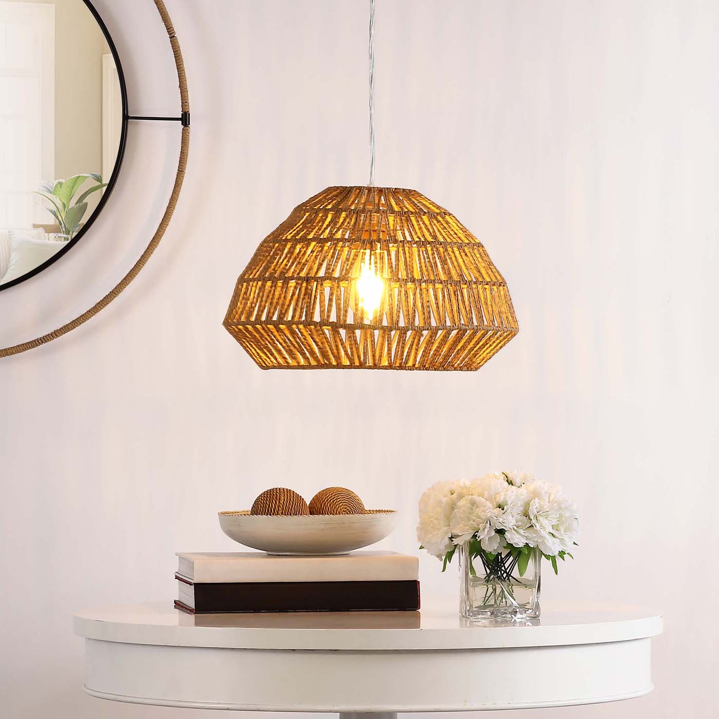 Create a Caribbean cabana ambiance in any room with this lovely Niamh Pendant. Artfully crafted of natural rattan in a classic dome shape, Niamh casts a warm glow that enlivens your d?cor with coastal-chic charm.