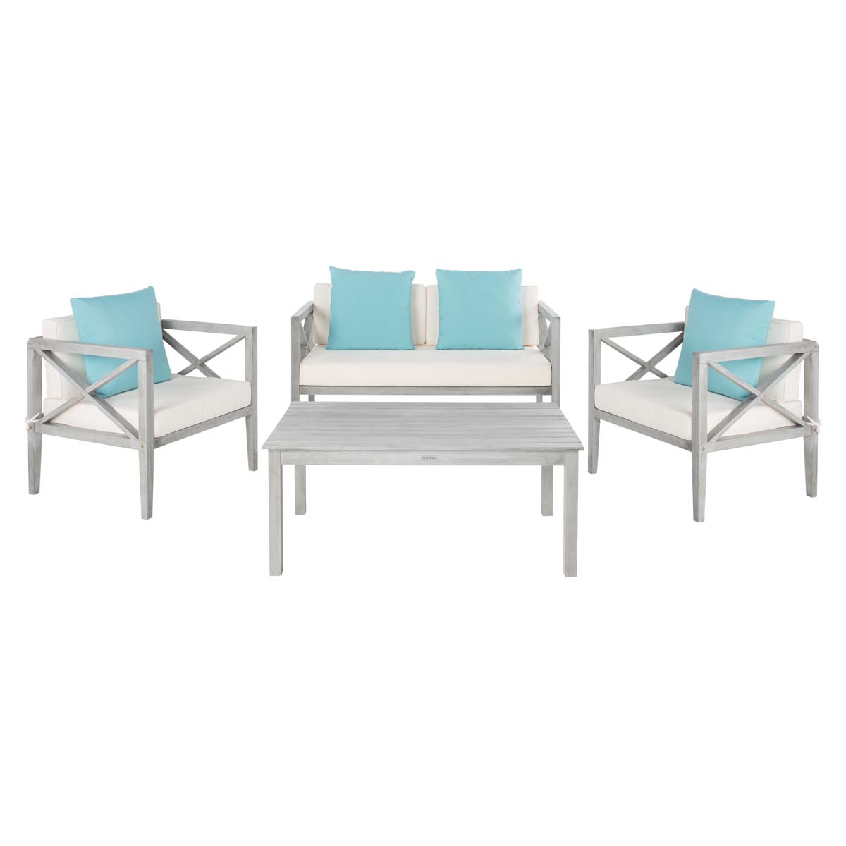 Safavieh Nunzio 4 Pc Outdoor Set With Accent Pillows - Grey Wash/Off-White/Light Blue