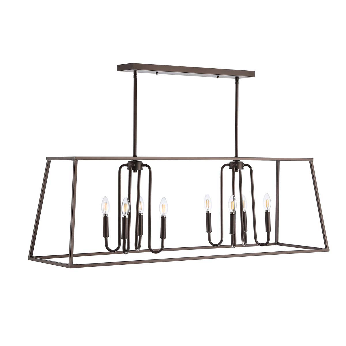 Unapologetically bold and stylish, this monumental 8 light pendant is modern sculpture in any dining room. Designed with two effortlessly chic inverted candelabras, its elegant metal construction is highlighted by its luxurious oil rubbed bronze finish.