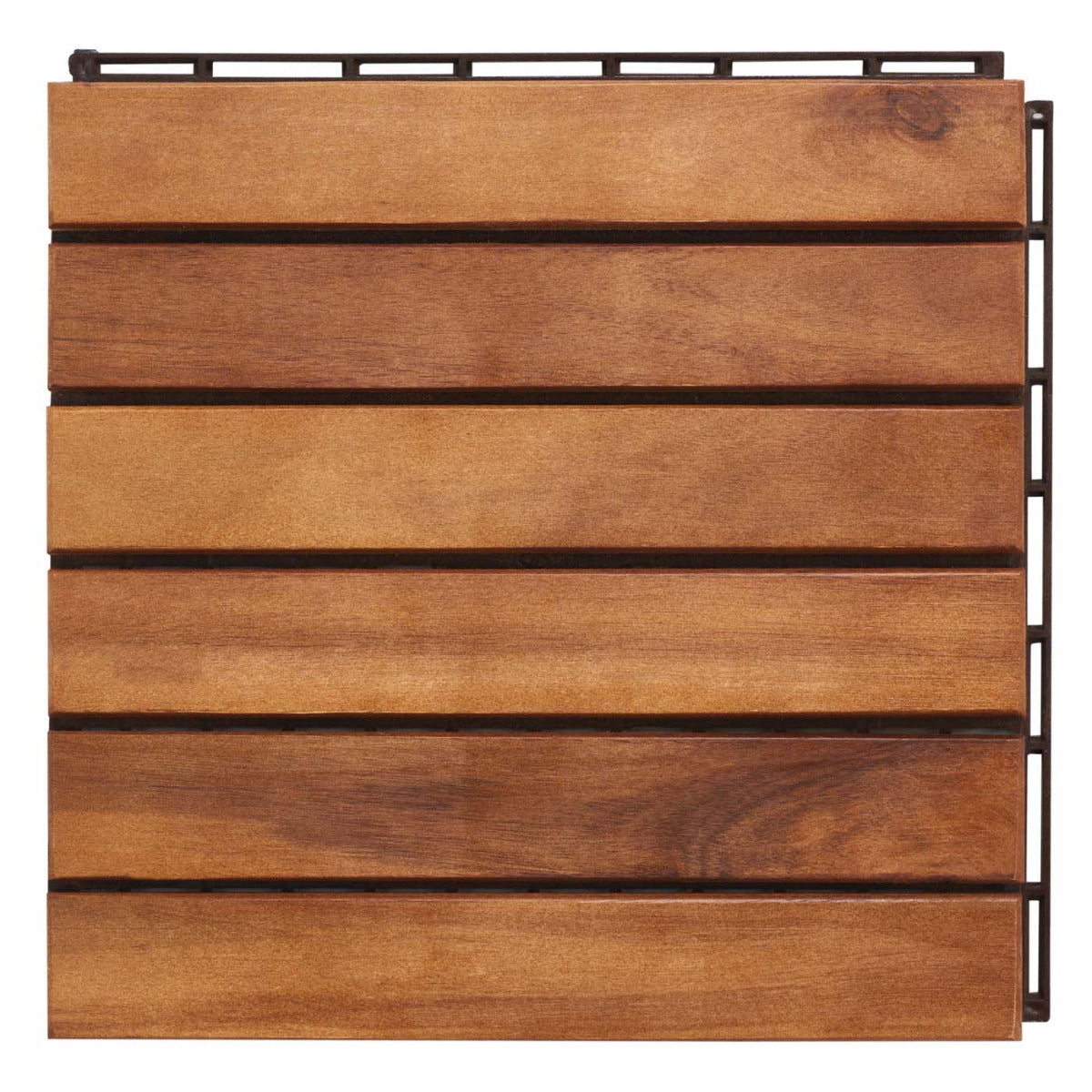 Reinvent your outdoor entertaining area with these lovely Osaka Wooden Floor Tiles. Expertly designed to interlock in any configuration to suit your unique needs, Osaka?? rich natural finish and six-slat design is chic and classic, giving your porch or patio a clean, finished look. Includes 10 tiles.
