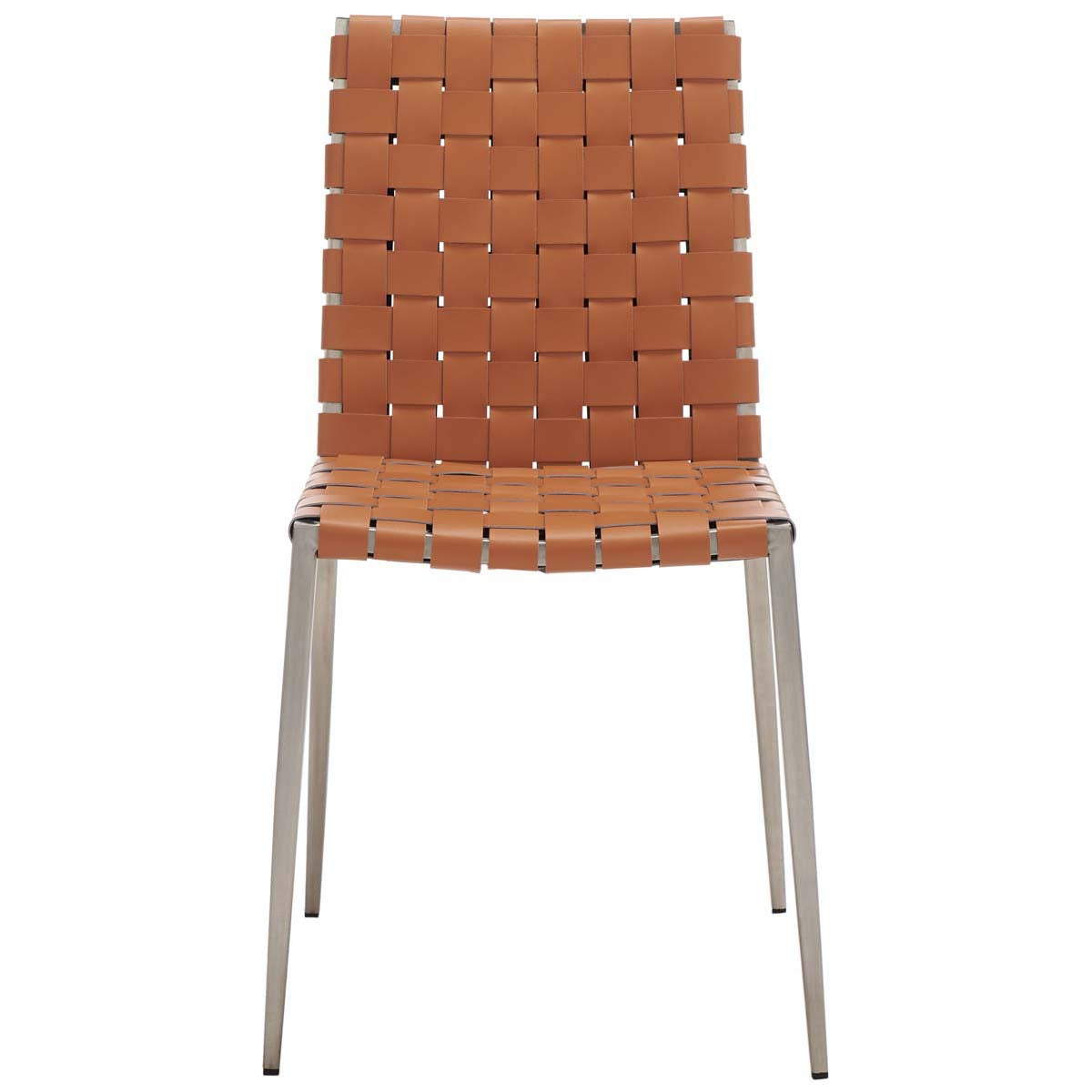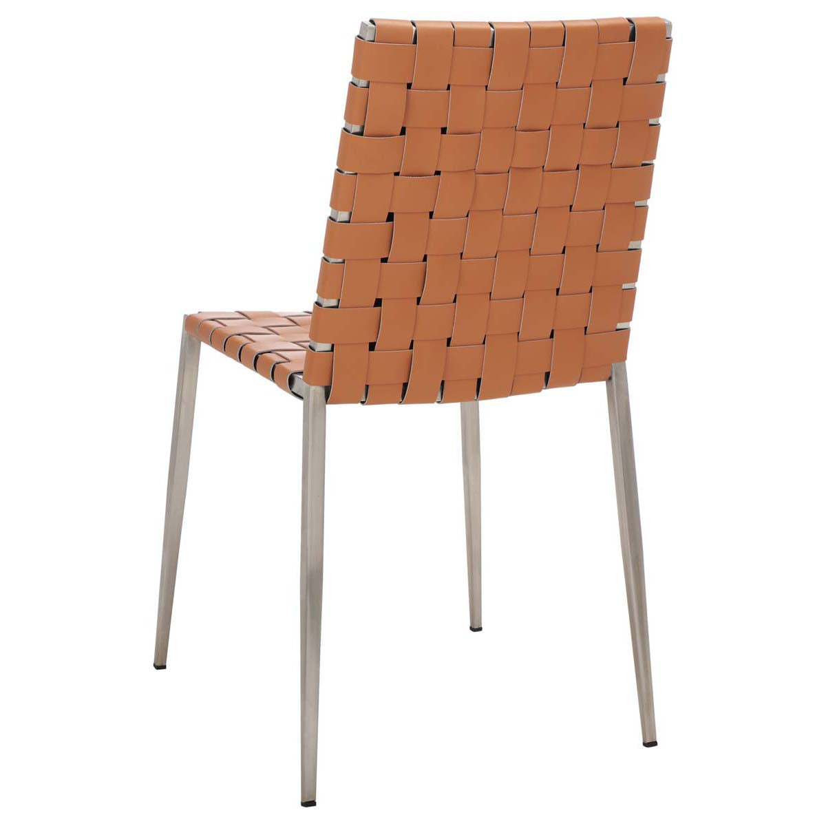 Refresh and redefine any modern interior with the relaxed contemporary beauty of this Rayne Dining Chair. Basket-woven natural-toned strips of leather beautifully offset the clean lines of Rayne?? silver metal base, making it the artistic designer?? favorite. Sold in sets of two.