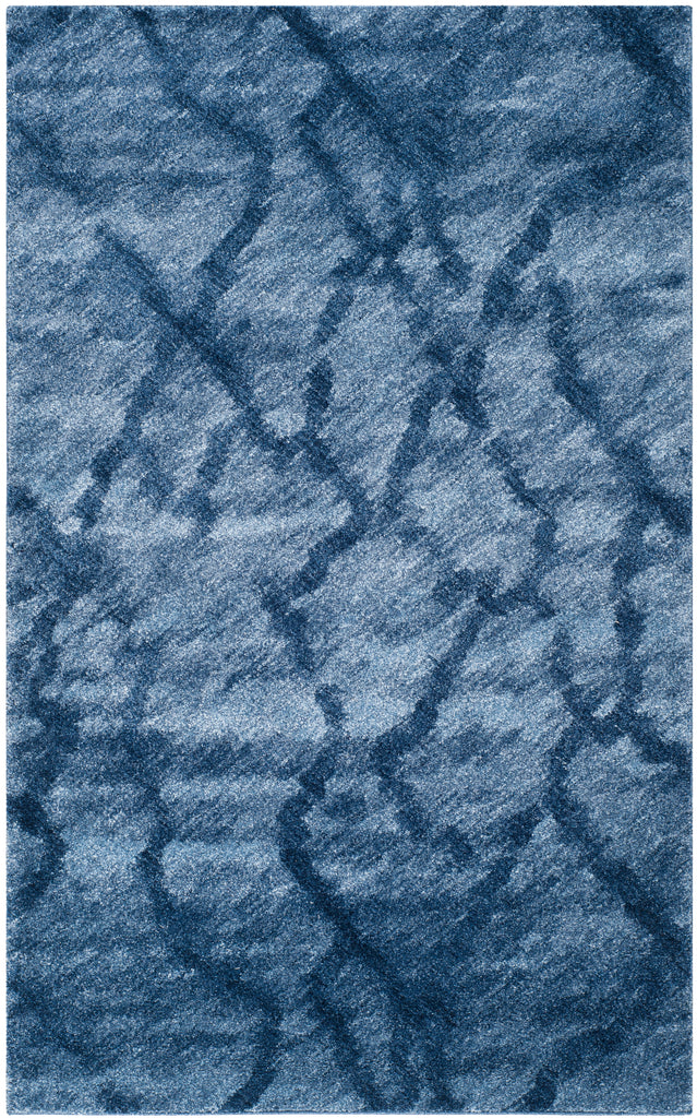 Ribbons of dark blue cascade across a rippled blue pile on this Retro rug by Safavieh. Contemporary styled, this power-loomed area rug boasts mid-century modern style through eloquent colors and organic motifs. Made of synthetic yarns for a long-lasting chic modern floor covering.,Ribbons of dark blue cascade across a rippled blue pile on this Retro rug by Safavieh. Contemporary styled, this power-loomed area rug boasts mid-century modern style through eloquent colors and organic motifs. Made of synthetic yarns for a long-lasting chic modern floor covering.