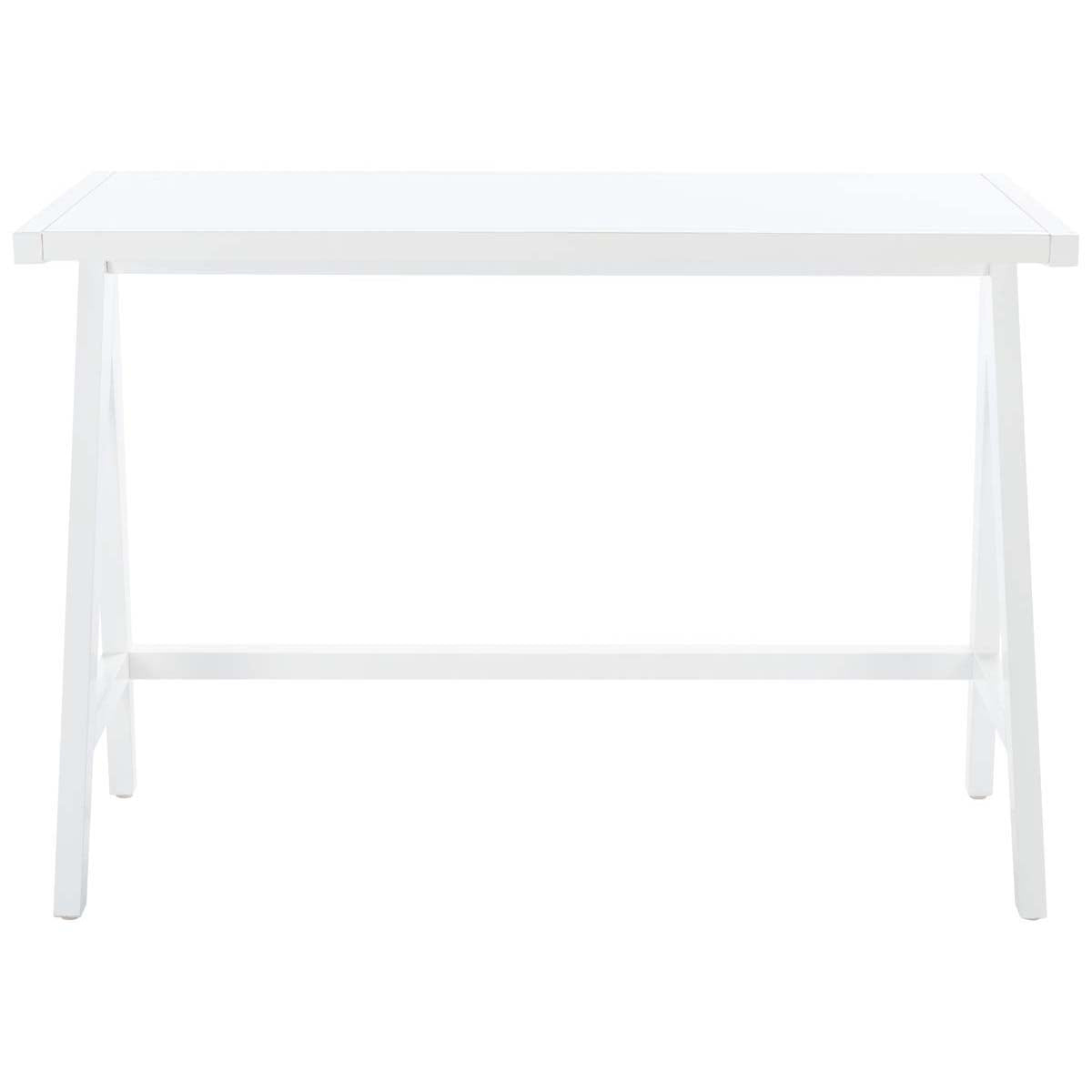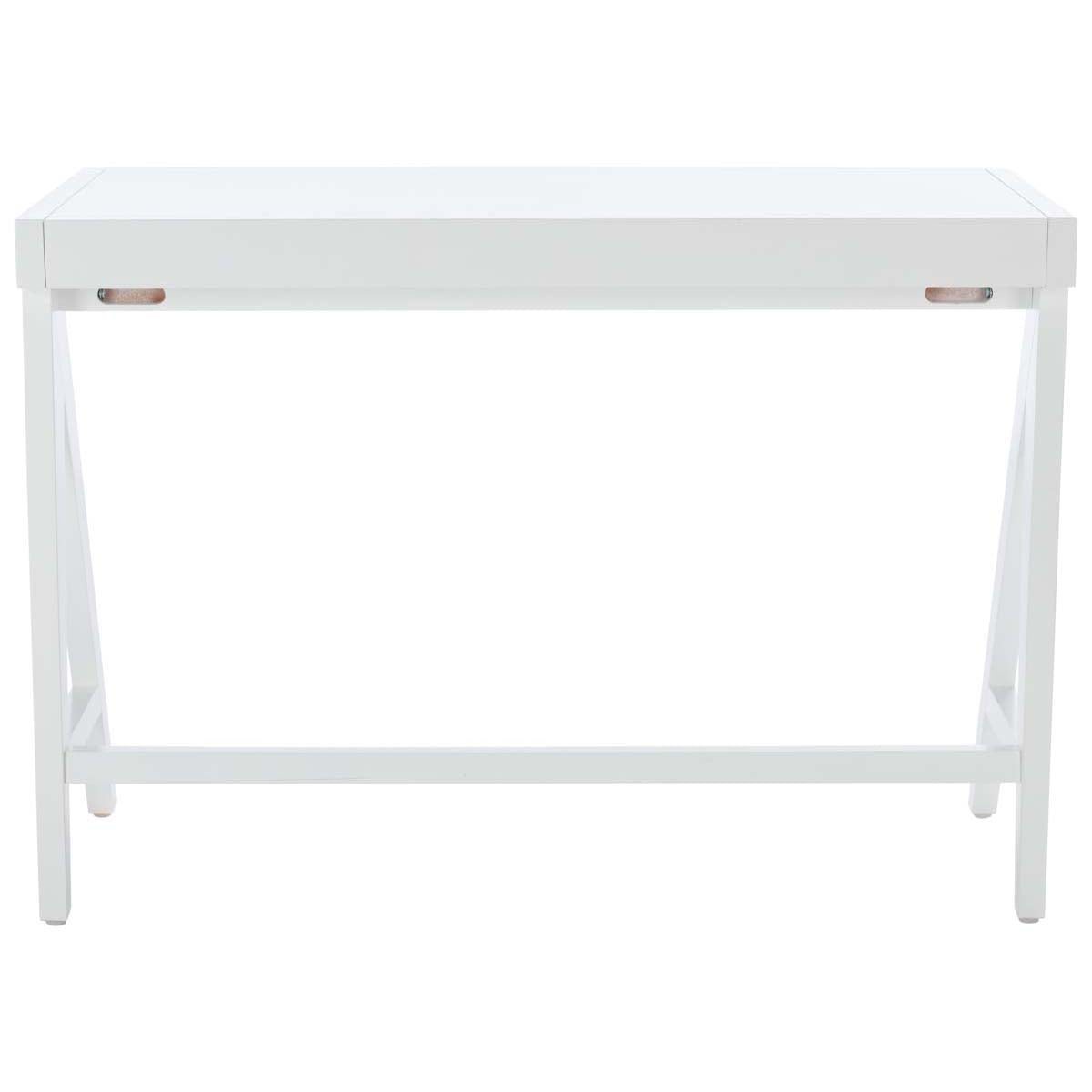 This Ripley Desk brings industrial farmhouse charm to the home office or workspace. Ripley???s classic A frame silhouette is given additional visual depth by its subtle asymmetry while its clean white finished mahogany makes it perfect for any d??cor???s color scheme.