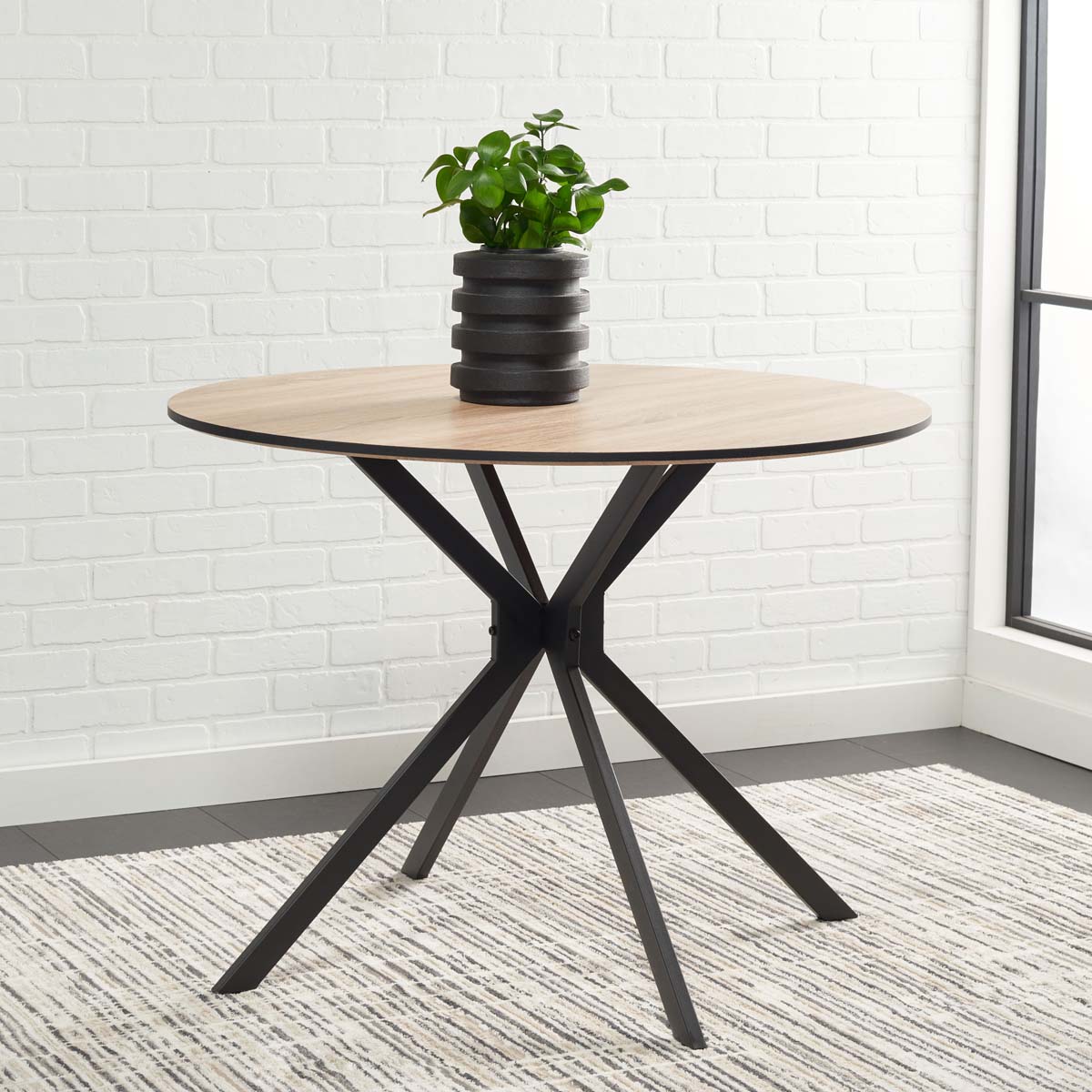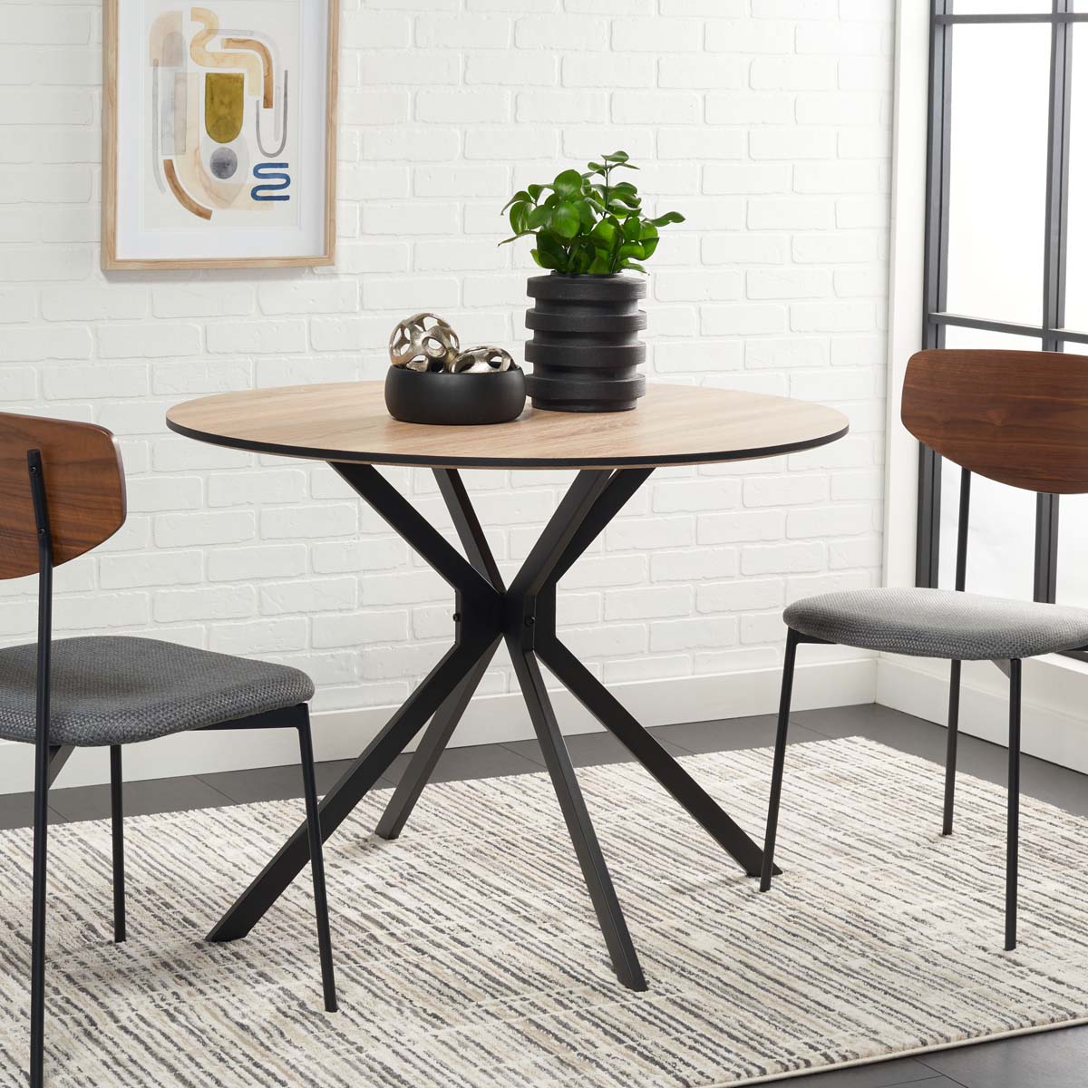 Mid-Century meets modern in this bistro-style Rixley Dining Table. Perfectly designed for small-space eating areas, Rixley?? angled black base pairs impeccably with its natural wood top, creating a retro-chic industrial vibe that elevates any room?? aesthetic.