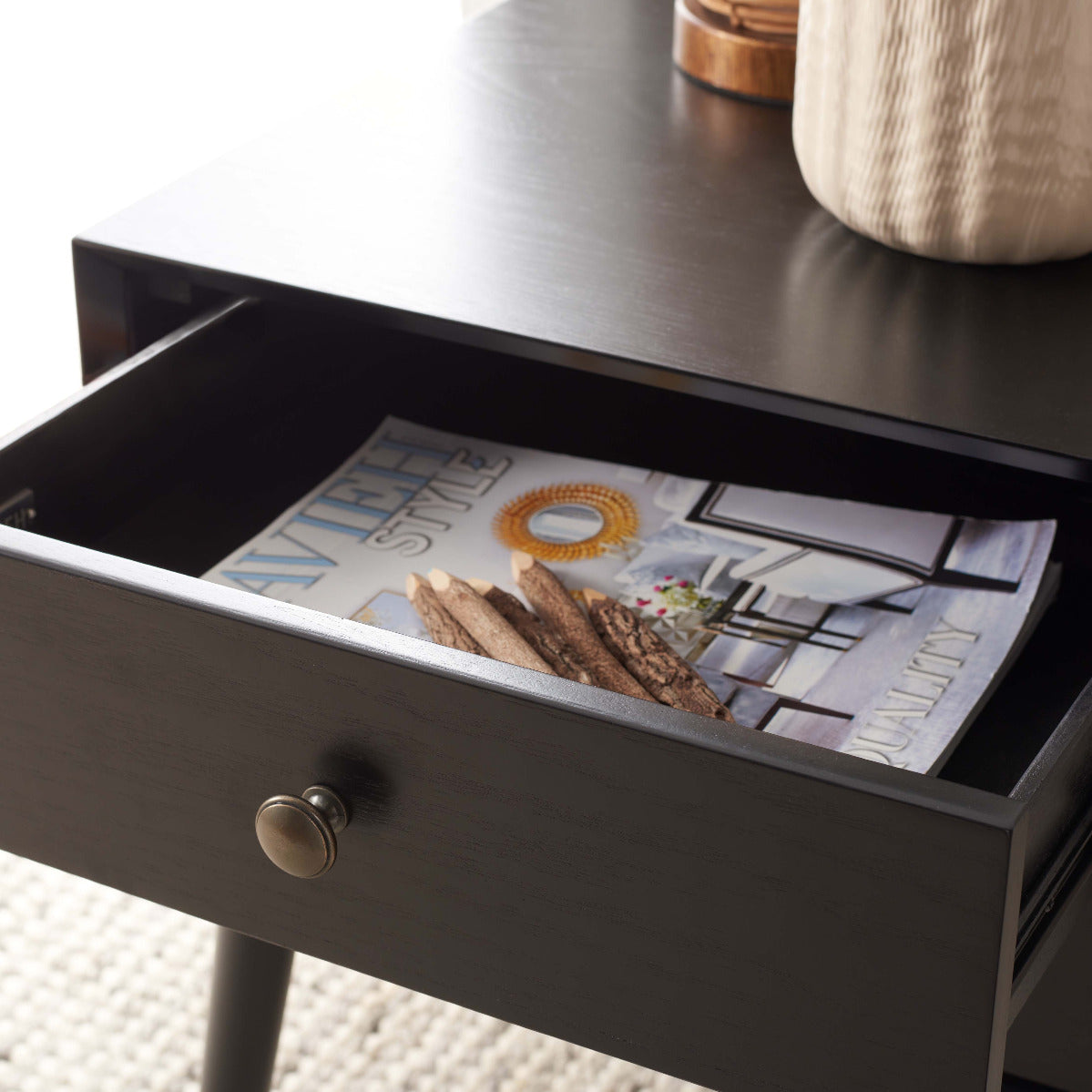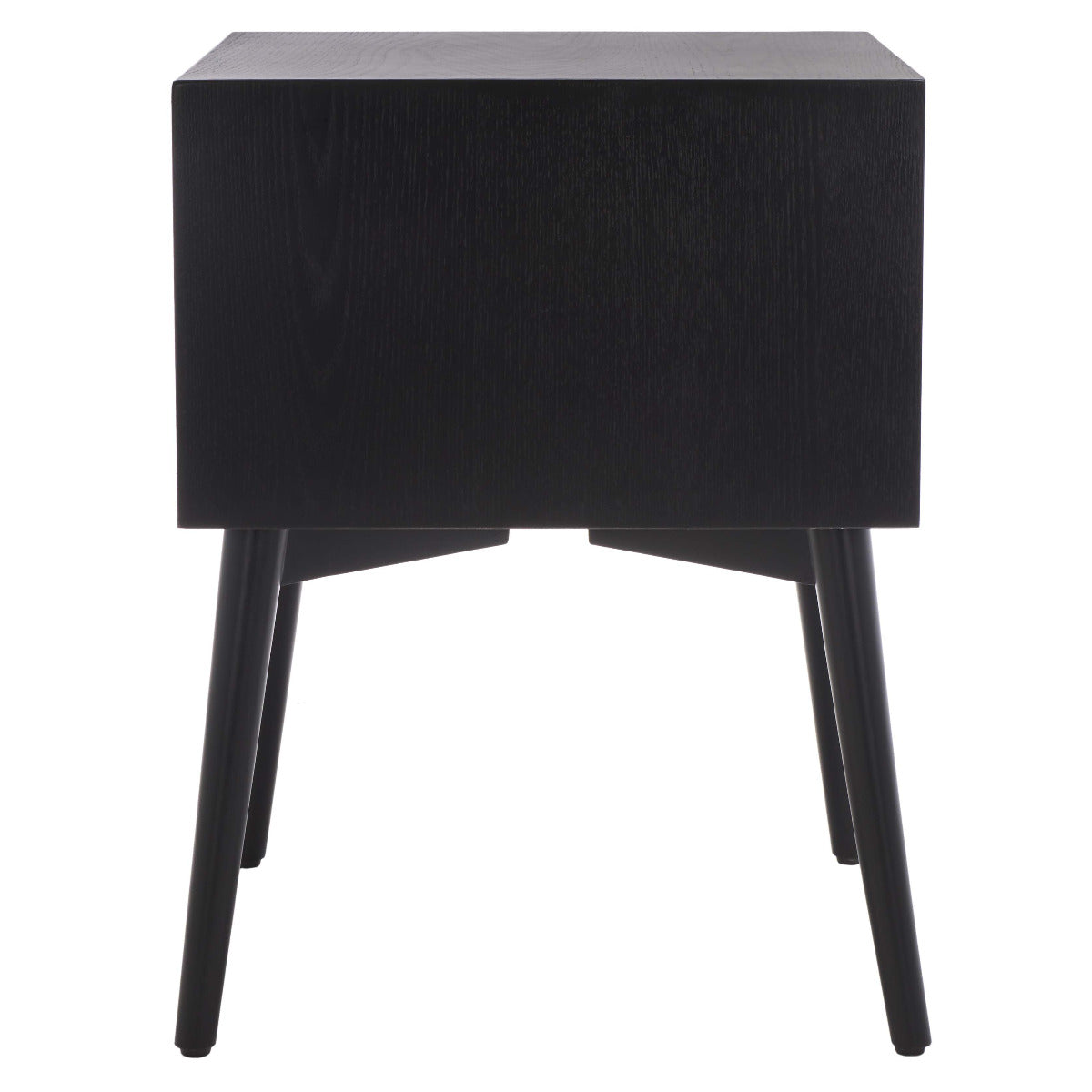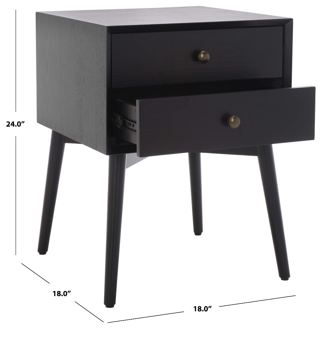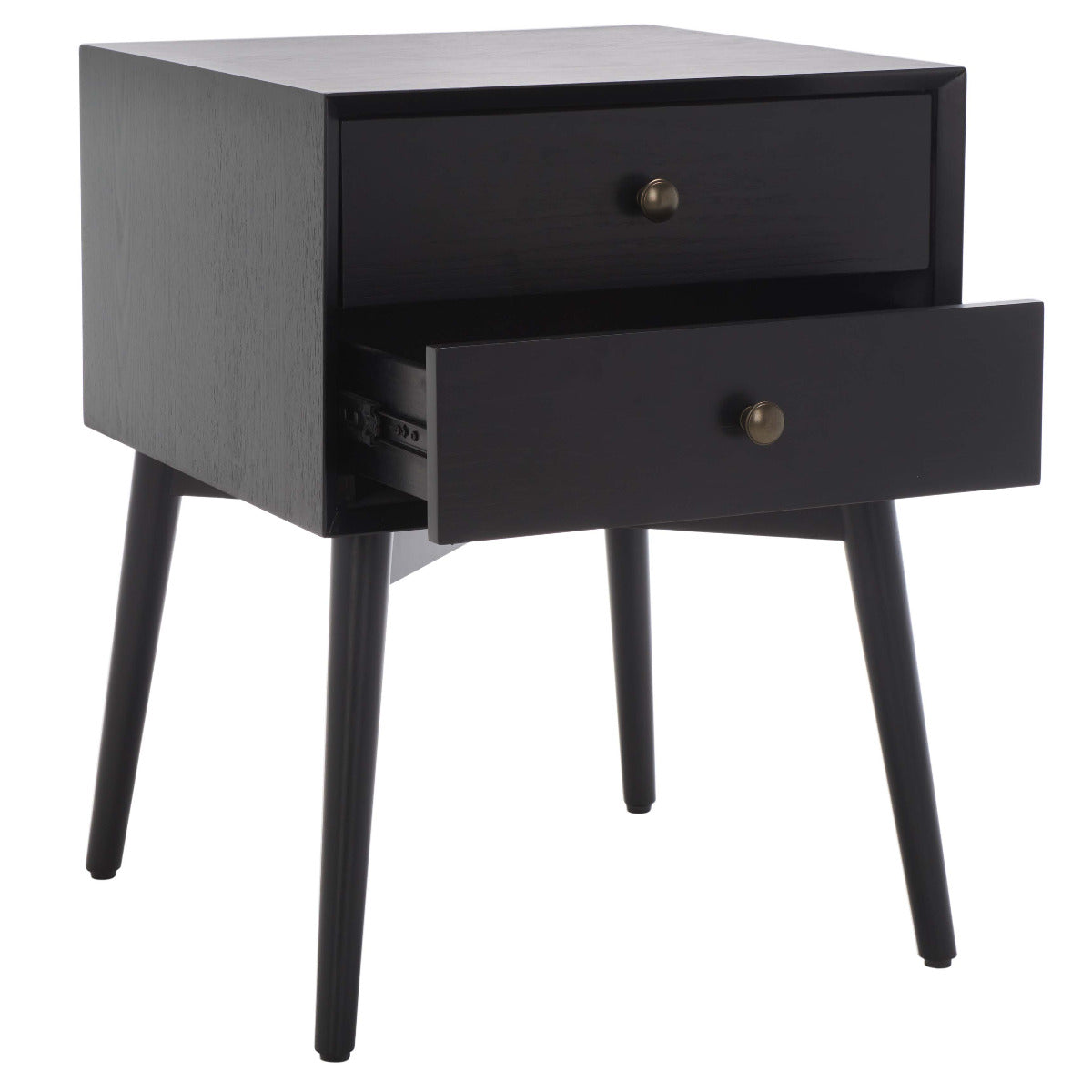 A staple in any classic-contemporary bedroom, this Scully Nightstand takes its inspiration from timeless Mid-Century designs. Splayed legs lend a touch of retro charm, while two velvet-lined drawers provides easy-access bedside storage. Scully?? jet black finish beautifully upgrades the look.