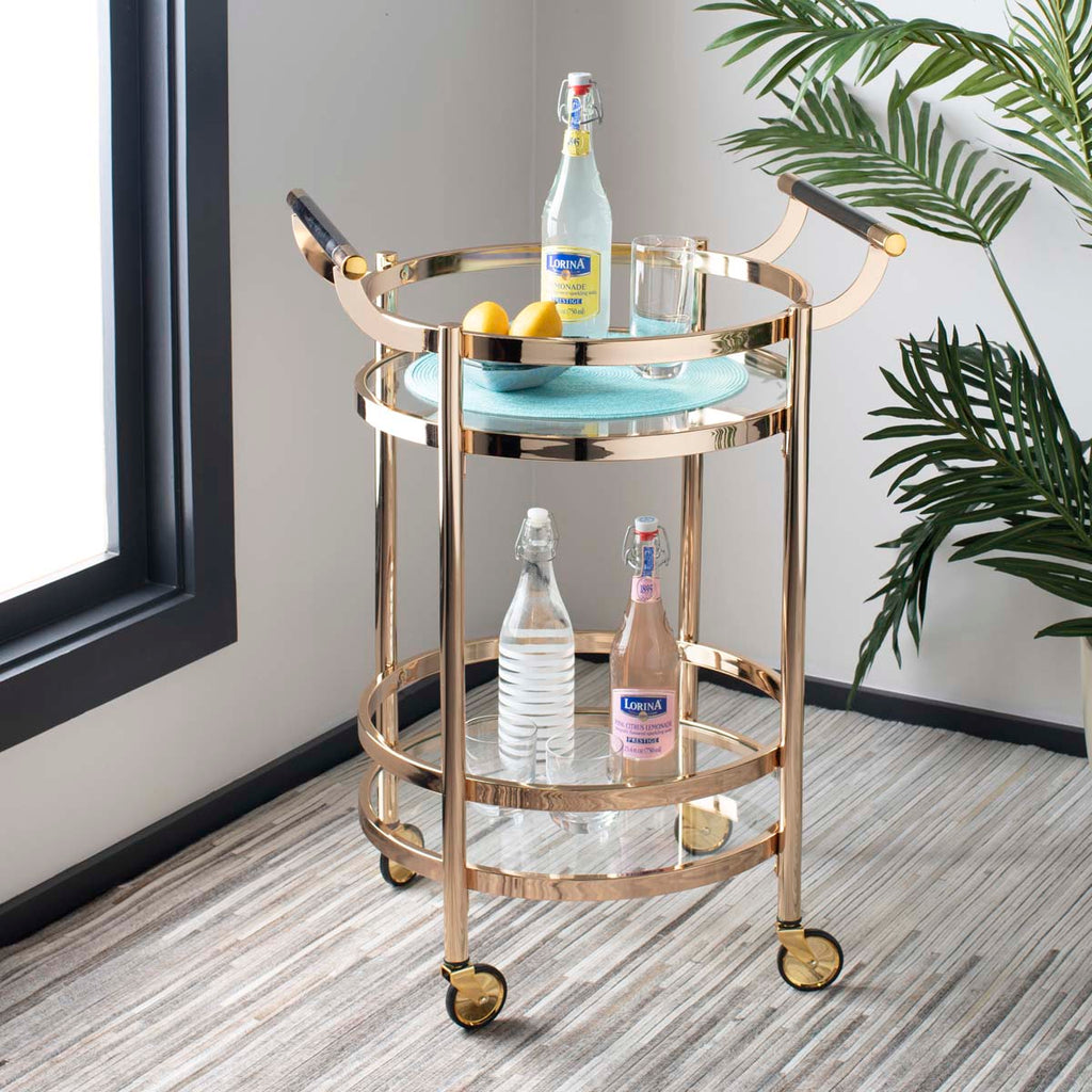 Safavieh Sienna 2 Tier Round Bar Cart - Gold/Glass