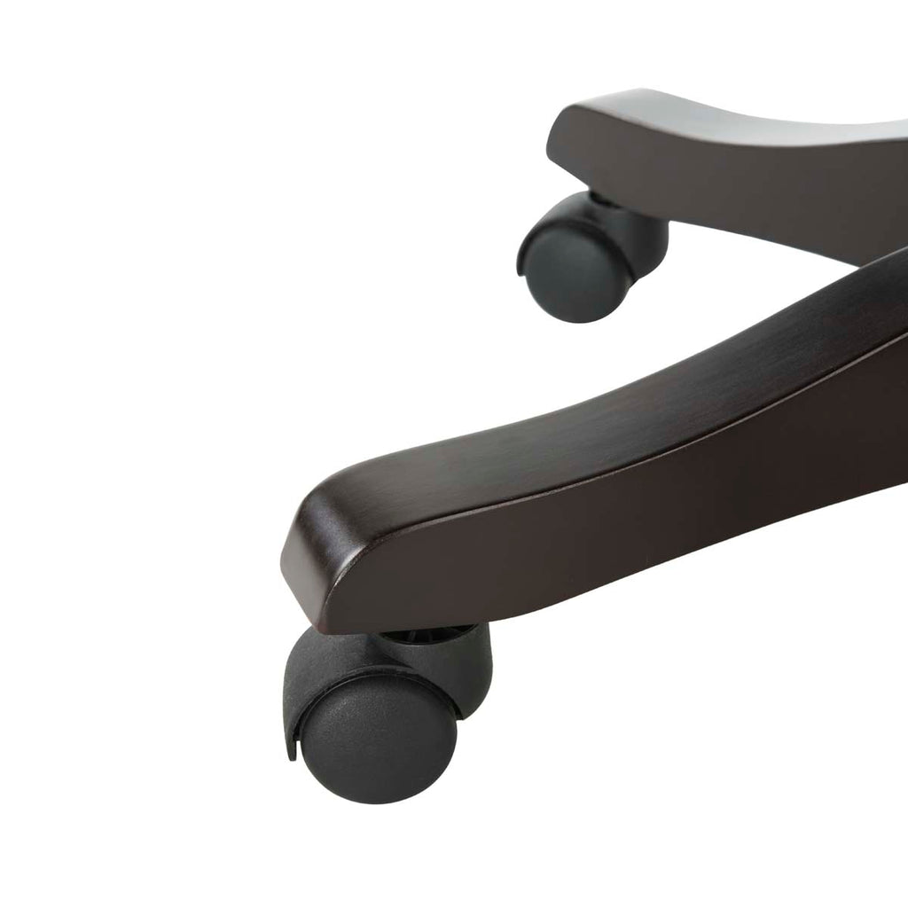 Posh and polished, this contemporary swivel office chair was inspired by the glamourous corporate headquarters of New York?? most prestigious fashion brand. Finished in espresso, its chic navy velvet upholstery is tufted for a timeless, elegant appeal.