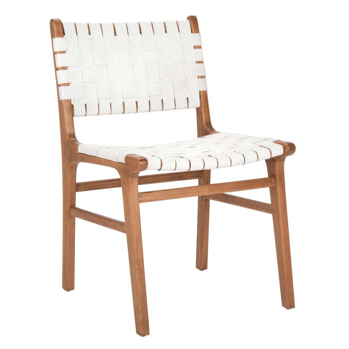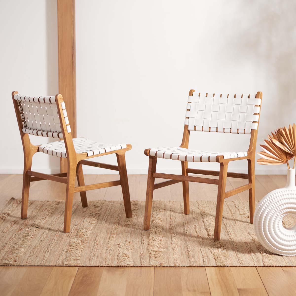Taika Woven Leather Dining Chair - White/Natural - (Set of 2) | Safavieh - DCH4002B-SET2