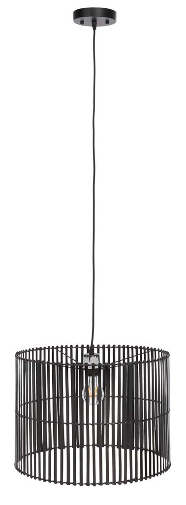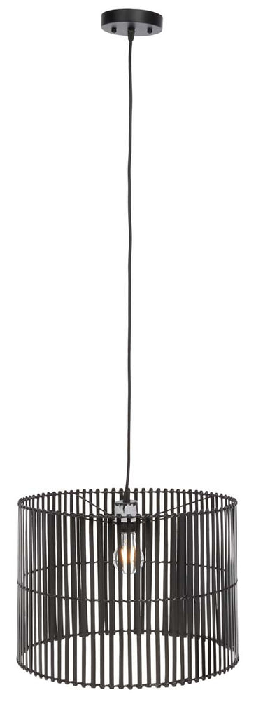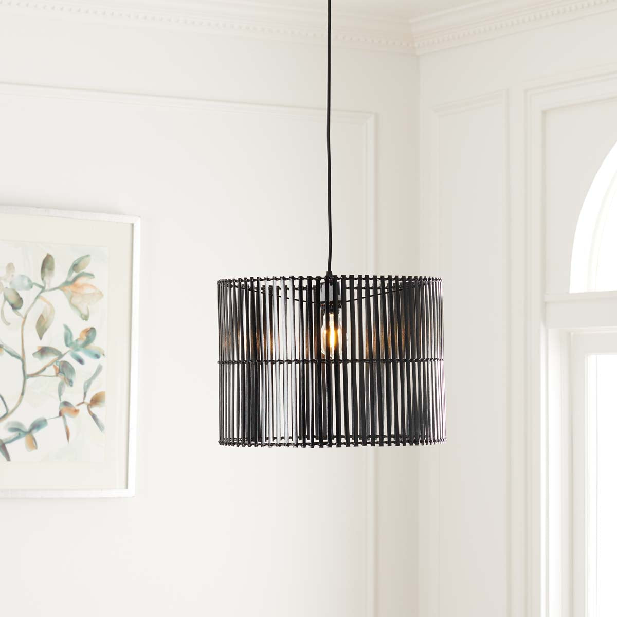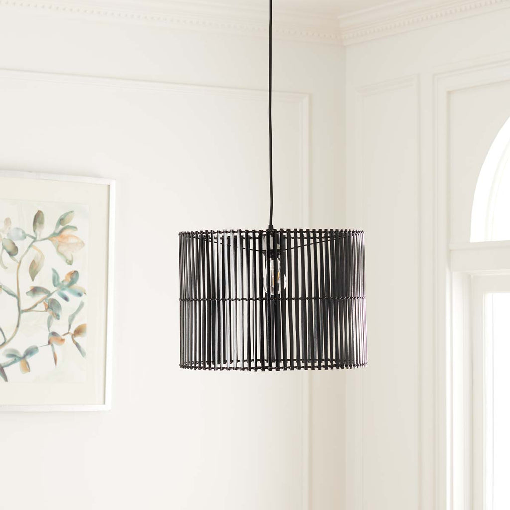 Add a dose of warmth and character to your home with our Valley pendant light. A modern drum shade is upgraded with a light and airy bamboo framework. Adorned in a versatile black color, our pendant light brings warmth and detail to any corner. Both durable and eco-friendly, the pendant light lends a comforting glow to a reading nook, dining area, living room, or any space that needs a relaxed and breezy touch.