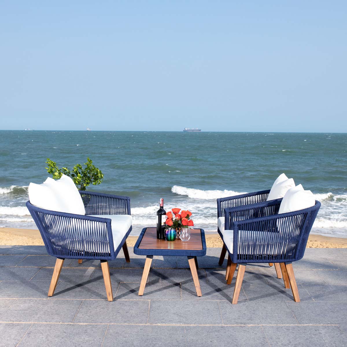 Safavieh Velso 4 Pc Living Set - Navy Rope/Beige Cushion/Natural Legs