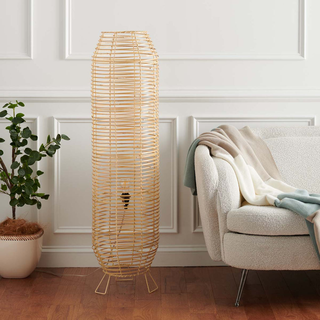 Breathe life into your home with the warmth and elegance of our Wilde floor lamp. The sleek and minimal profile of the floor lamp is uplifted with a bamboo framework. With a breezy and relaxed look, it has the versatility to blend with many different styles, making a gorgeous statement each time. It allows light to beautifully peak through its airy frame, delivering a warm and comforting glow.