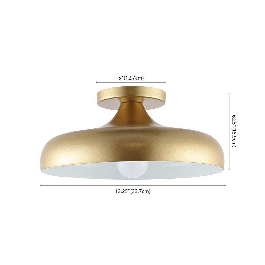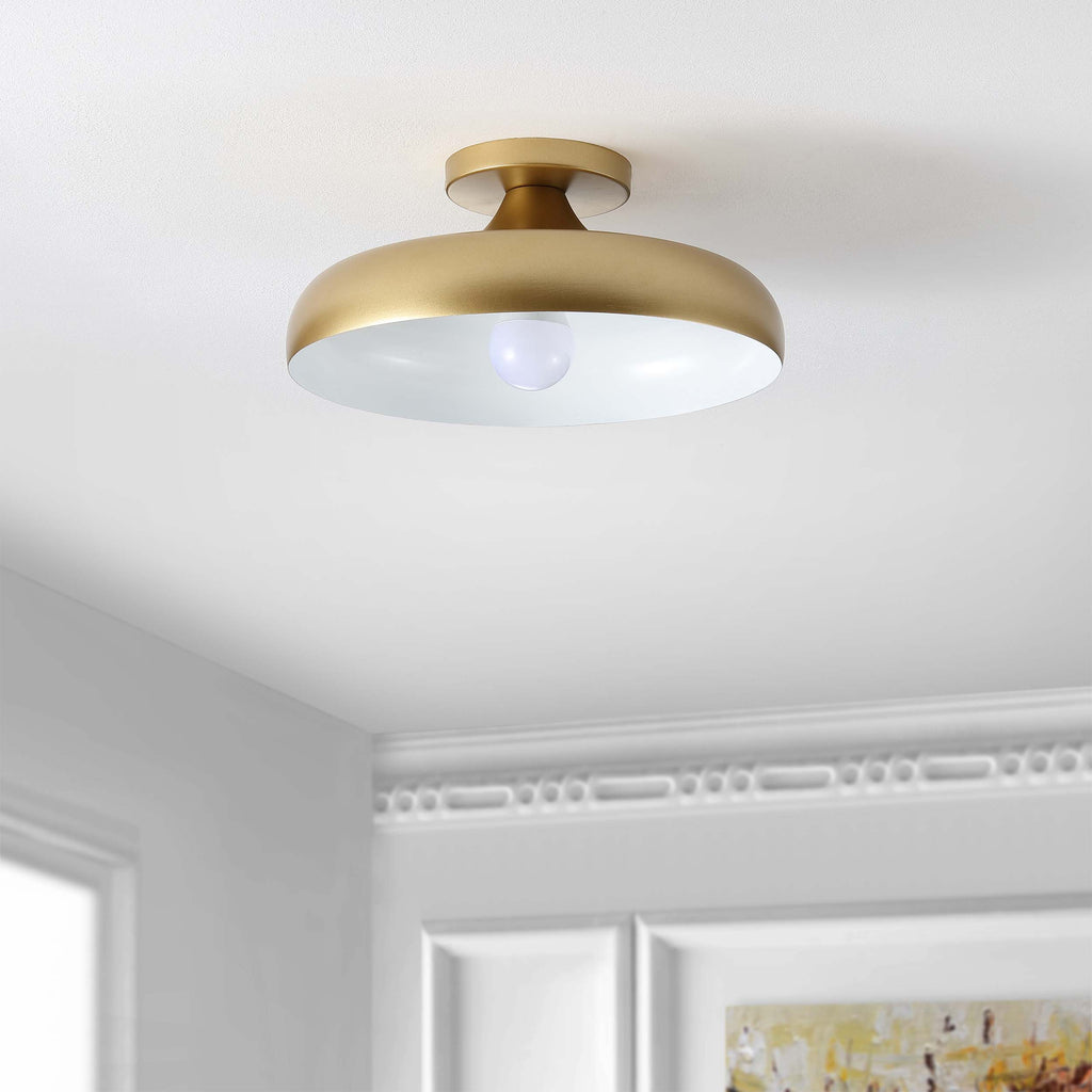 An icon of classic-contemporary appeal, this fabulous Willet Flush Mount is the best of both worlds. Willet?? pairing of a painted gold exterior with a clean white interior is pure artistic genius, seamlessly accenting any room with style and ease.