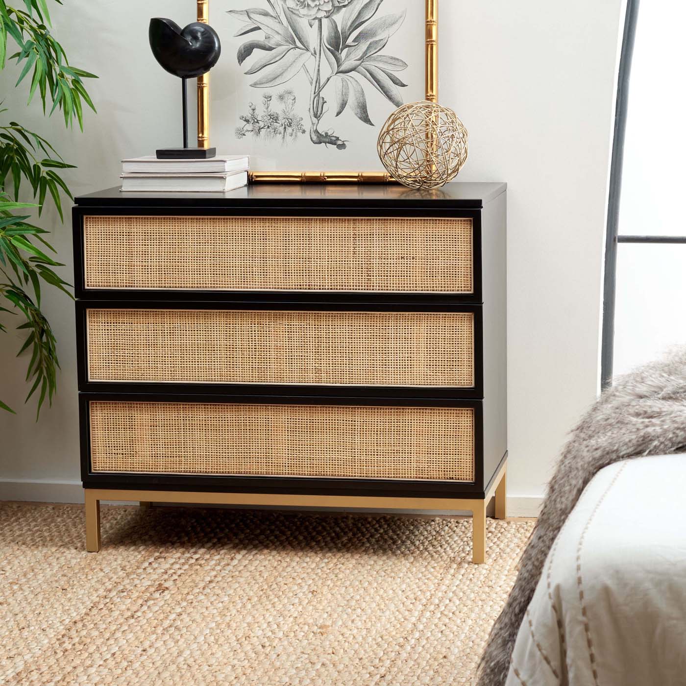 Safavieh Zadie 3 Drawer Rattan Chest - Black / Natural