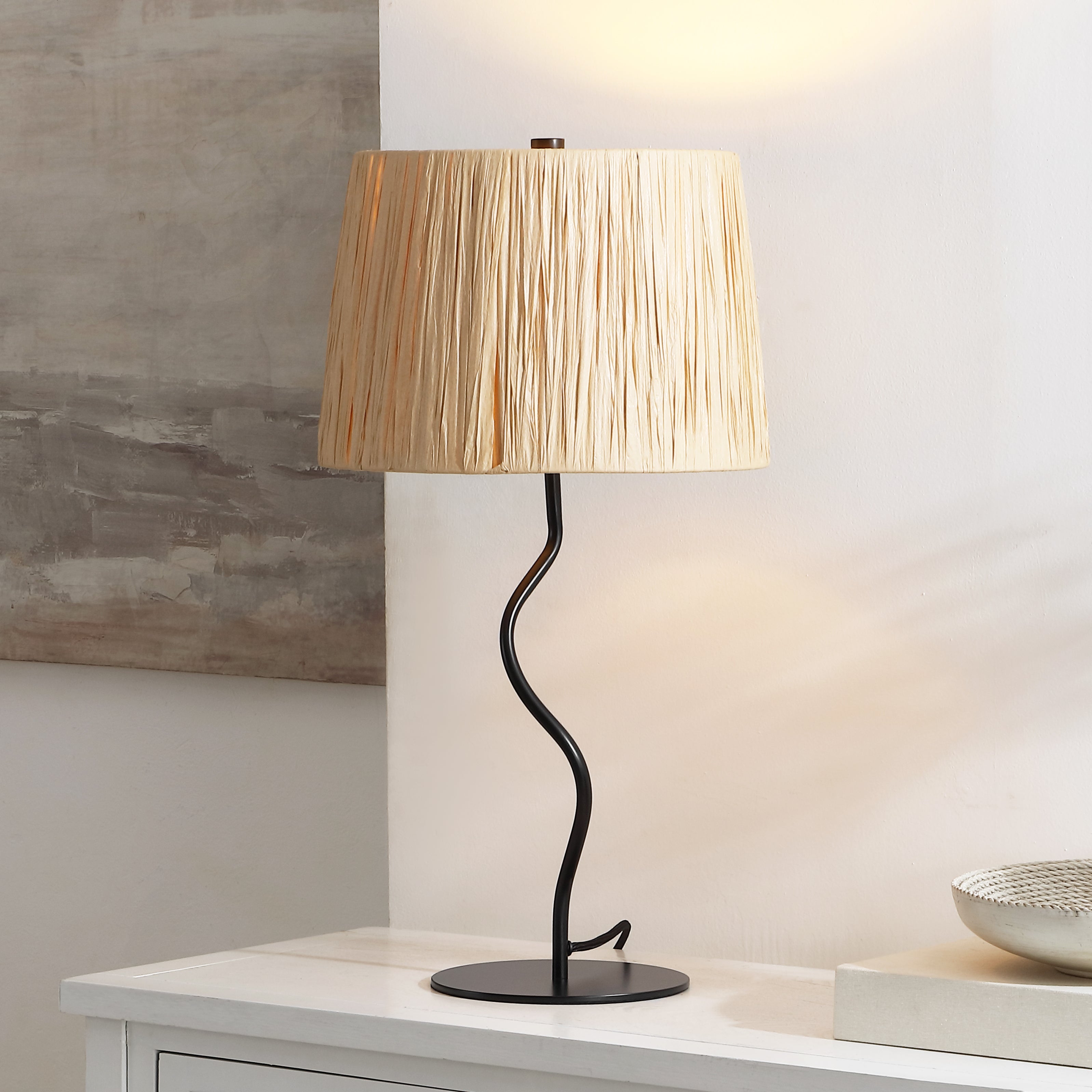 Illuminate your space with the sleek elegance of the Ziggi table lamp. Standing at 24.25 inches tall, this lamp offers a striking combination of a black metal body and a natural paper rope shade. Its contemporary design seamlessly fits into any setting, adding a touch of sophistication. The unique texture of the paper rope shade casts a warm, inviting glow, creating a cozy ambiance in your room. Perfect for your living room, bedroom, or office, the Ziggi lamp combines style and function effortlessly. Enhance your decor with this stylish lighting solution that complements both modern and classic interiors. Whether for reading or as a decorative piece, Ziggi provides a charming focal point that transforms your space.