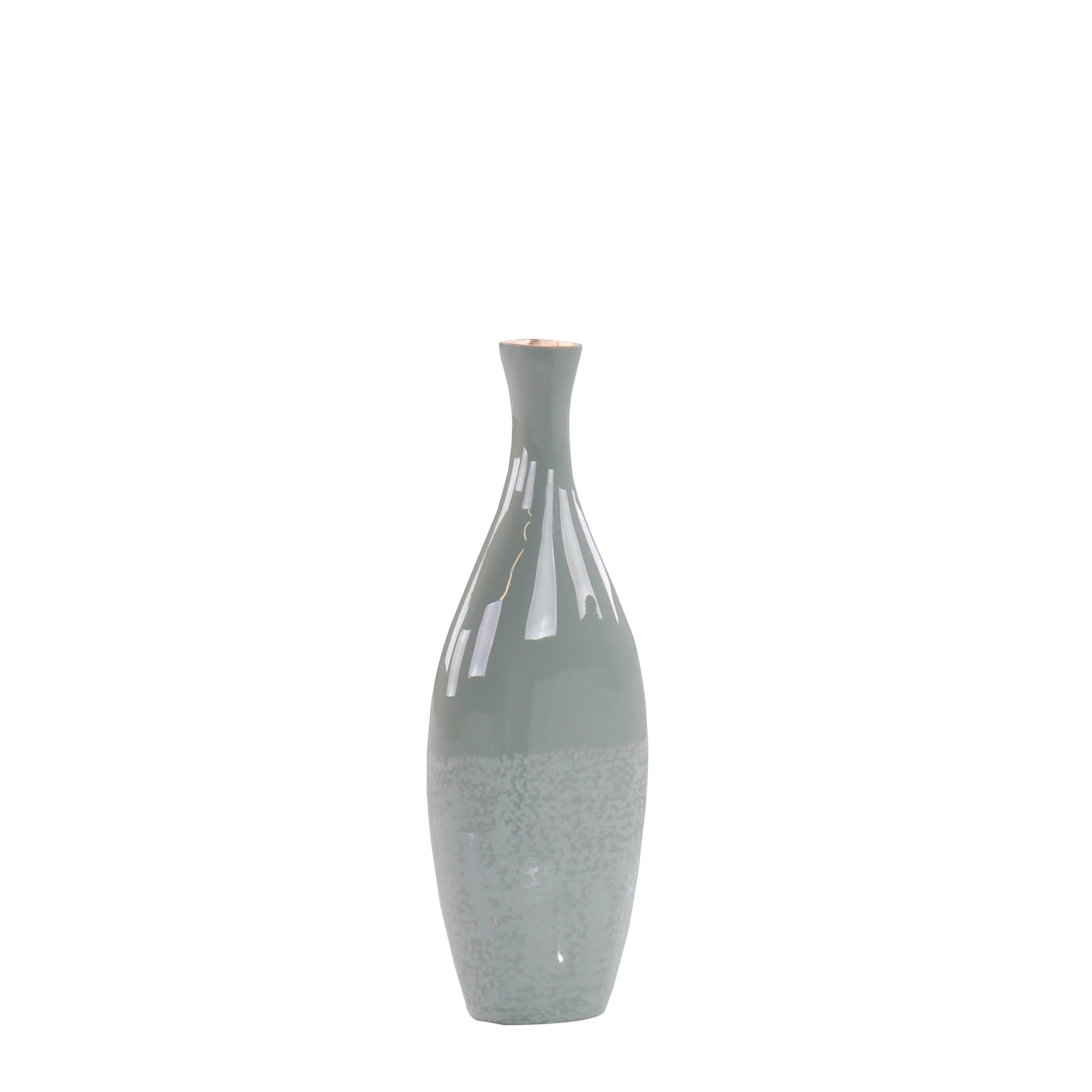 The Santorini Vase exudes the personality of a vibrant coastal town through its wavy profile and serene color palette. This aluminum vessel showcases a glossy, two-tone mint green finish with accents of gold along the rim.