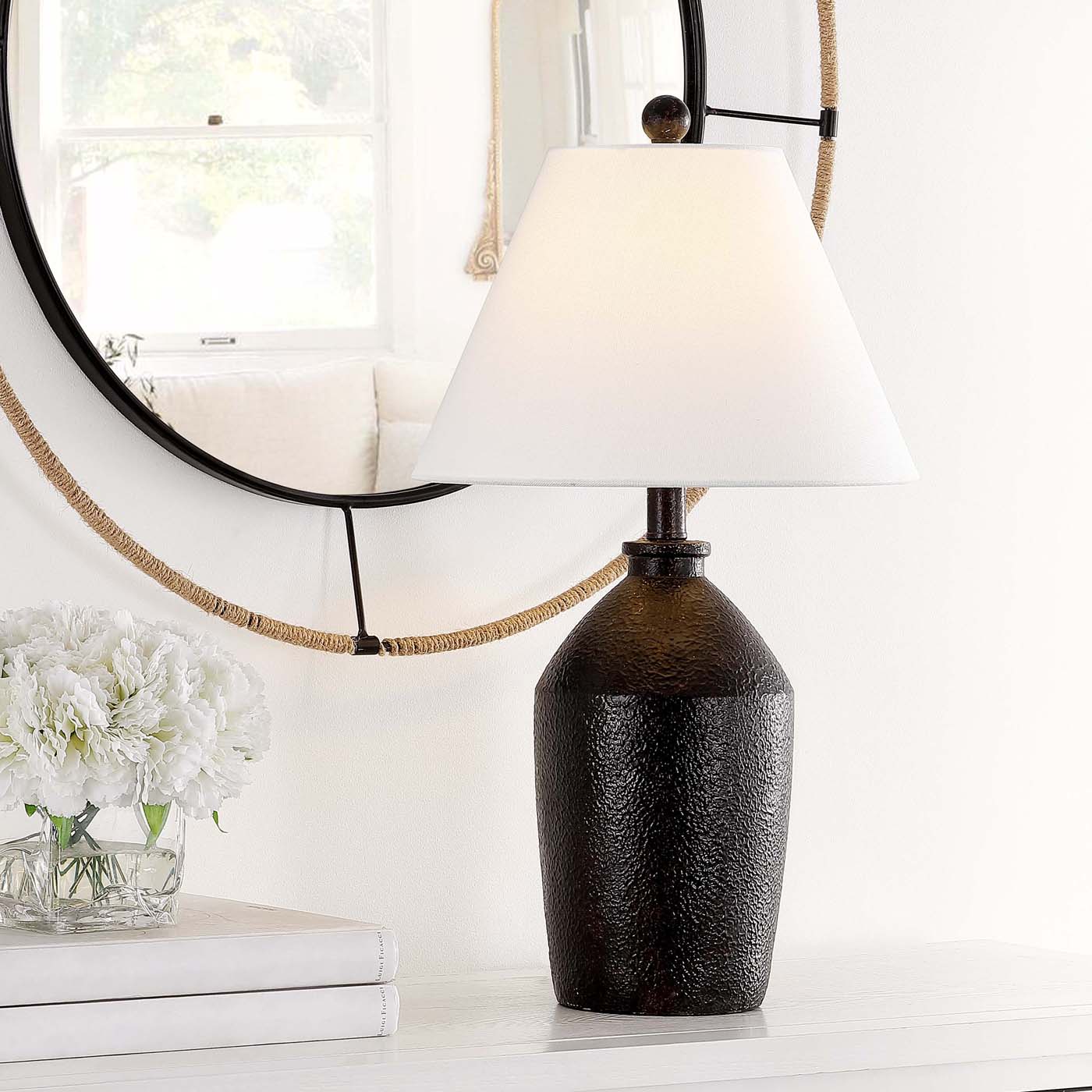 Styled after ancient pottery from the cradle of civilization, this Selna Table Lamp brings a collector?? charm to any room. Selna?? organic textural intrigue is beautifully offset by the crisp lines of its white empire shade, its deep brown tone emanating a warm, rich feel.