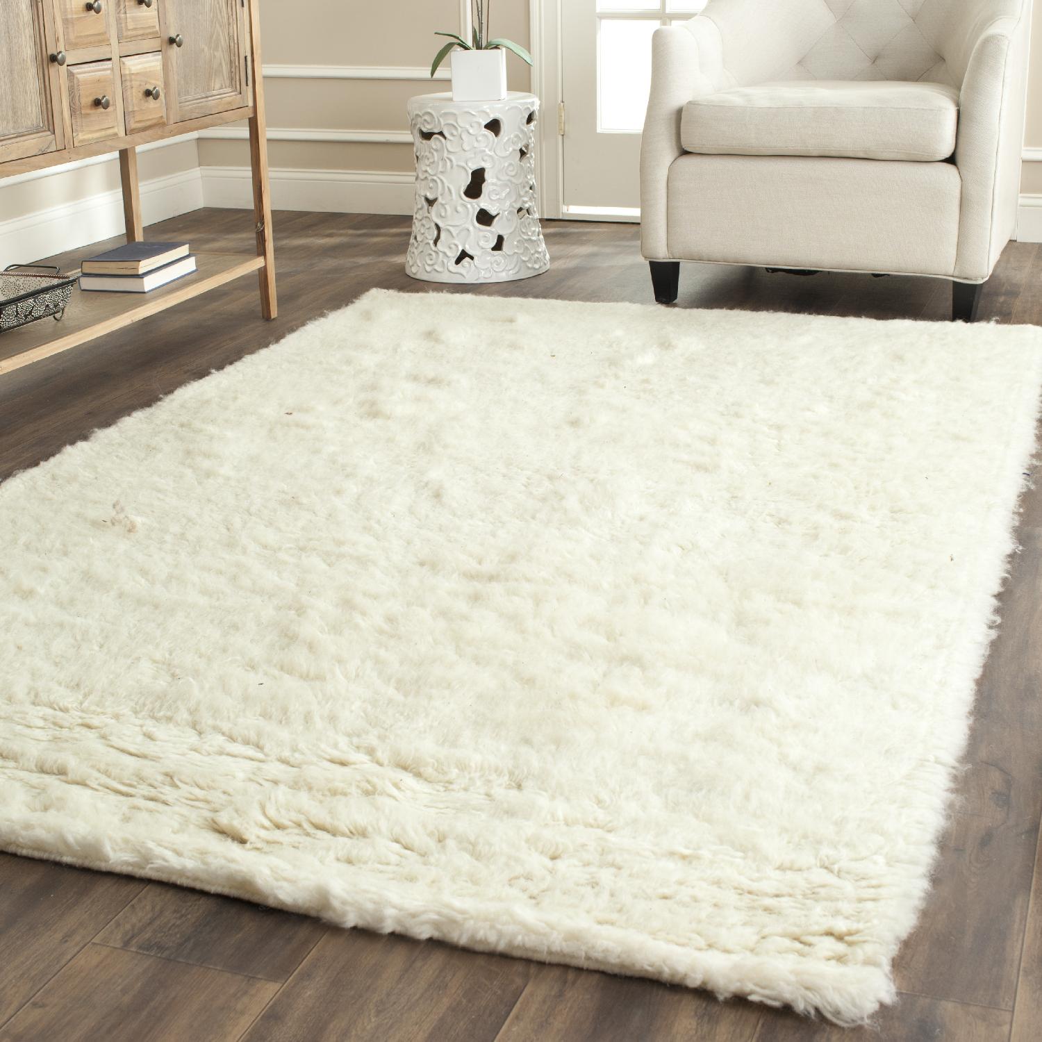 Warm up your bedroom or living room with a sensuously soft Flokati shag rug from Safavieh. Every step in production assures the character and appearance of Flokati rugs made in Greece since the fifth century. Crafted of wool that has been carded, spun, and softened for a fluffy shag texture, each rug is hand-tufted with a durable cotton canvas backing. Ideal for transitional and contemporary interiors, the Flokati rug comes in a natural ivory color.